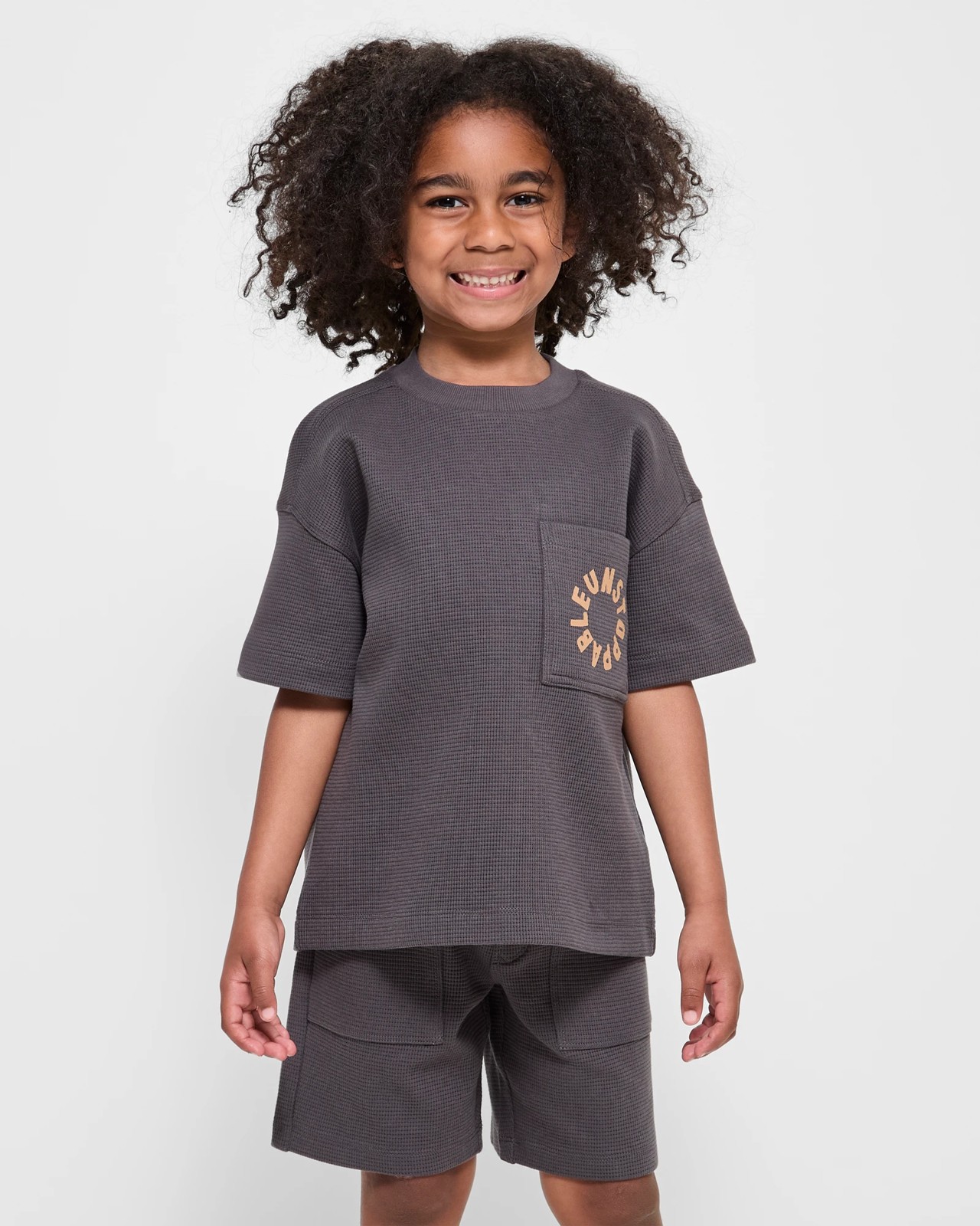 Discover the ultimate in comfort with our Australian Cotton Waffle T-shirt and Short Set, tailored for boys. Using Australian cotton, this set boasts a unique waffle fabric that is soft on the skin. The T-shirt features a ribbed crew neck and a charming chest pocket, adding a touch of style. The coordinating shorts come with a ribbed elastic waistband and handy side pockets, offering both a great fit and functionality. Give your child cosy and stylish wear with this delightful 2-piece set.