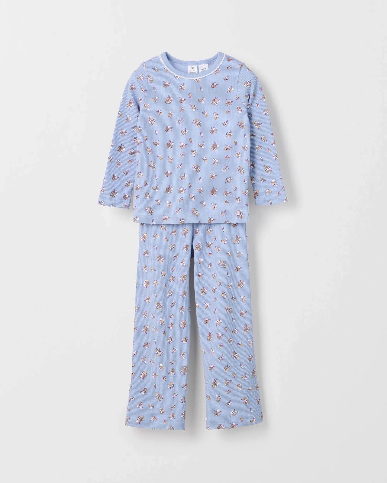 Let your little one snuggle up in the Australian Cotton Younger Girls Waffle Knit Pyjama Set. Made from soft cotton with a playful waffle texture, this charming two-piece makes bedtime cosy and fun. The top has a pretty lace-trimmed neckline and long sleeves, while the trousers feature a comfortable stretch waistband and relaxed, wide-leg style, ensuring easy movement and relaxed comfort for night-time or lazy mornings. With an adorable all-over print and regular fit, it's perfect for keeping her comfortable and happy. Add this gorgeous pyjama set to her collection and make bedtime a joy.
