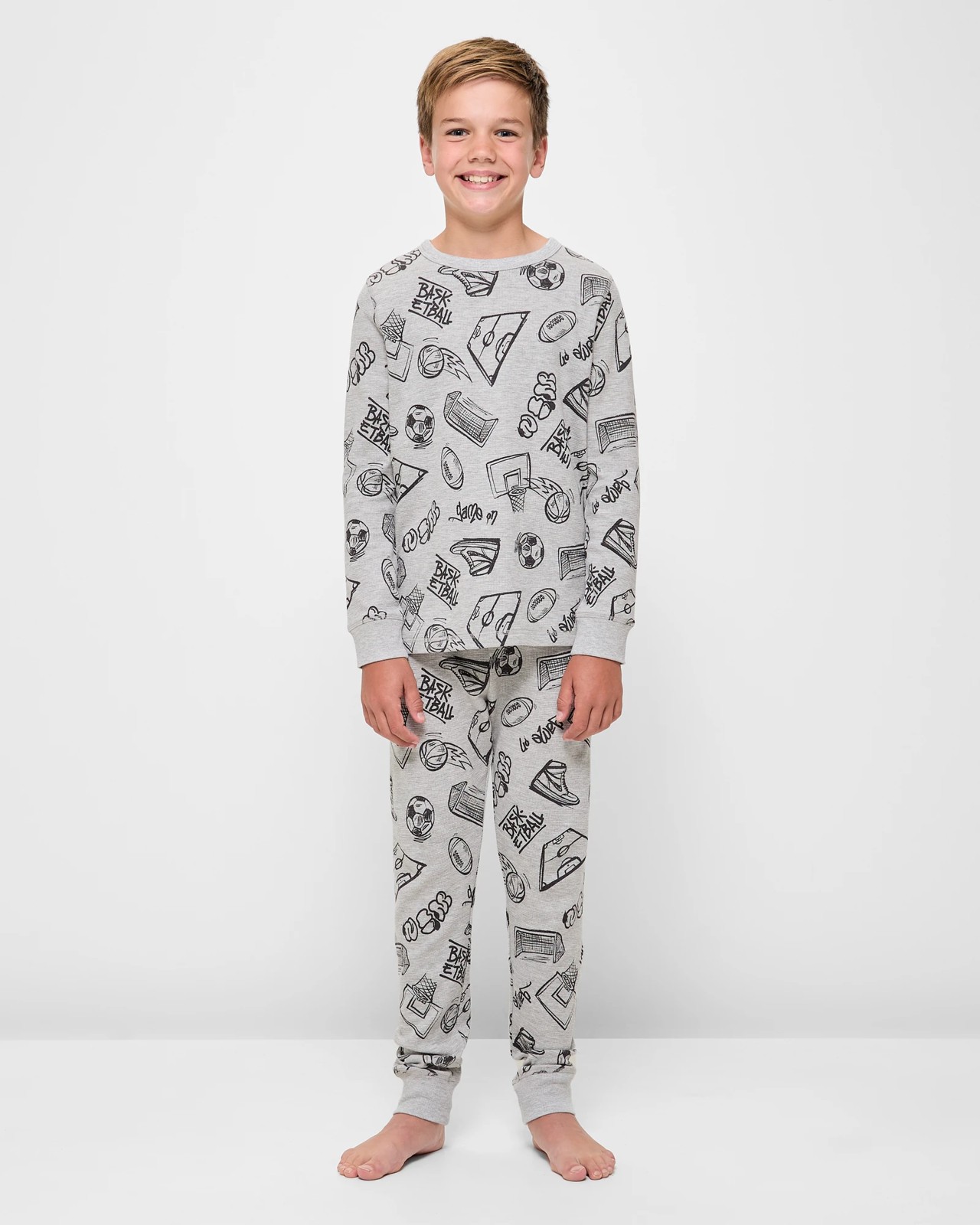 Australian Cotton Older Kids Waffle Pyjama Set - Sport Grey Marle 1 of 6