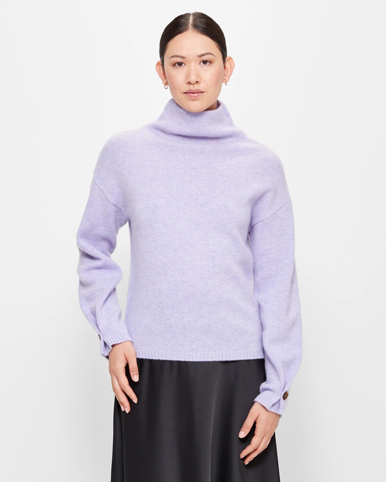 Long ribbed cuff sleeves with side button detail