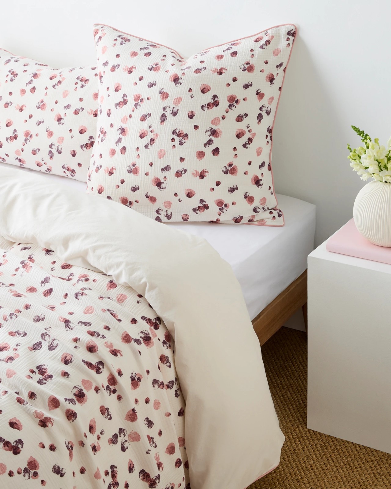 Welcome the warmth of autumn into your home with this charming muslin European pillowcase. Made from soft cotton and showcasing a lovely floral design, this pillowcase adds a sophisticated touch to your bedroom decor. The plain reverse side ensures it complements any bedding arrangement. Measuring 65cm x 65cm, it is perfectly sized for European pillows. Easy to maintain, just toss it in the washing machine. Combine it with the coordinating Autumn Printed Muslin Quilt Cover Set for a cohesive look, which is available separately. Transform your bed into an inviting autumn retreat today.