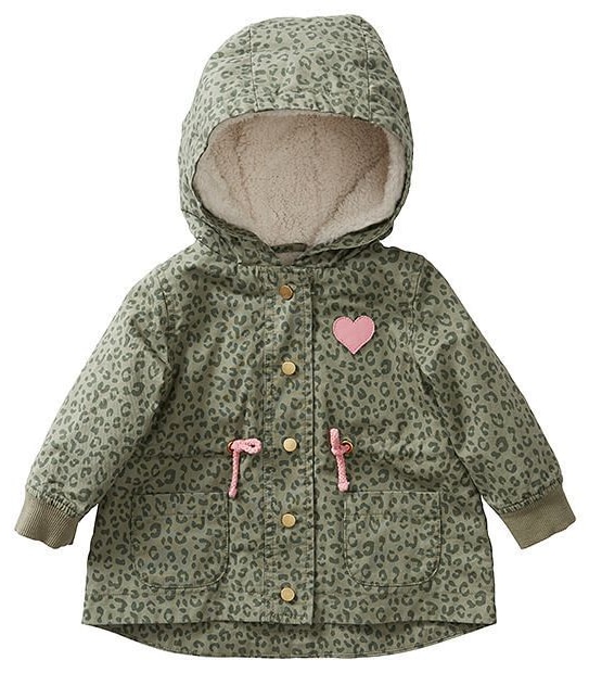 Bubs will look adorable in our animal print Rosie parka with partial sherpa lining with a snap stud closure down the front.- All-over animal print.