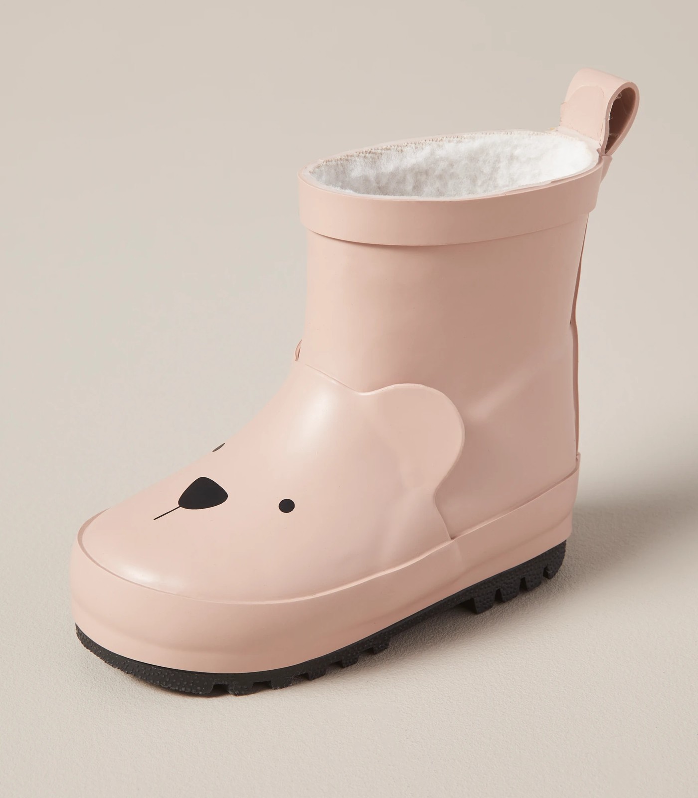 Water resistant, the baby Bear faux fur lined rainboots feature durable grip soles, fauz fur lining to keep little toes dry and warm and a pull back tabs. Great for a splashing good time throughout the cooler months!