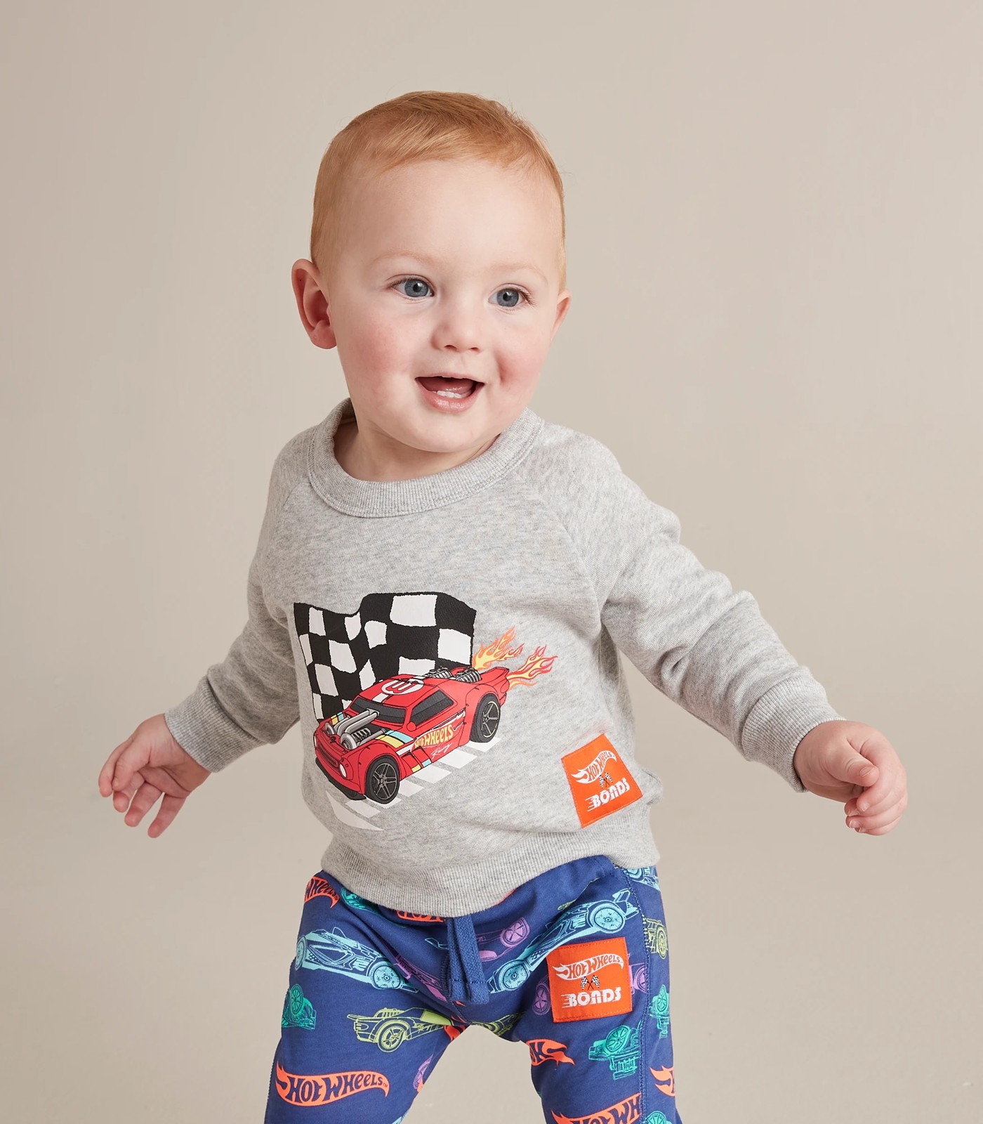 Fans will love the fleece lined Baby Bonds x Hot Wheels Jumper, featuring a crew neck, long raglan sleeves and large Hot Wheels print to chest.