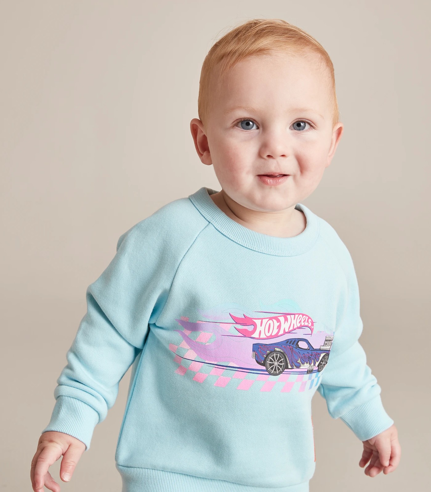Fans will love the fleece lined Baby Bonds x Hot Wheels Jumper, featuring a crew neck, long raglan sleeves and large Hot Wheels print to chest.