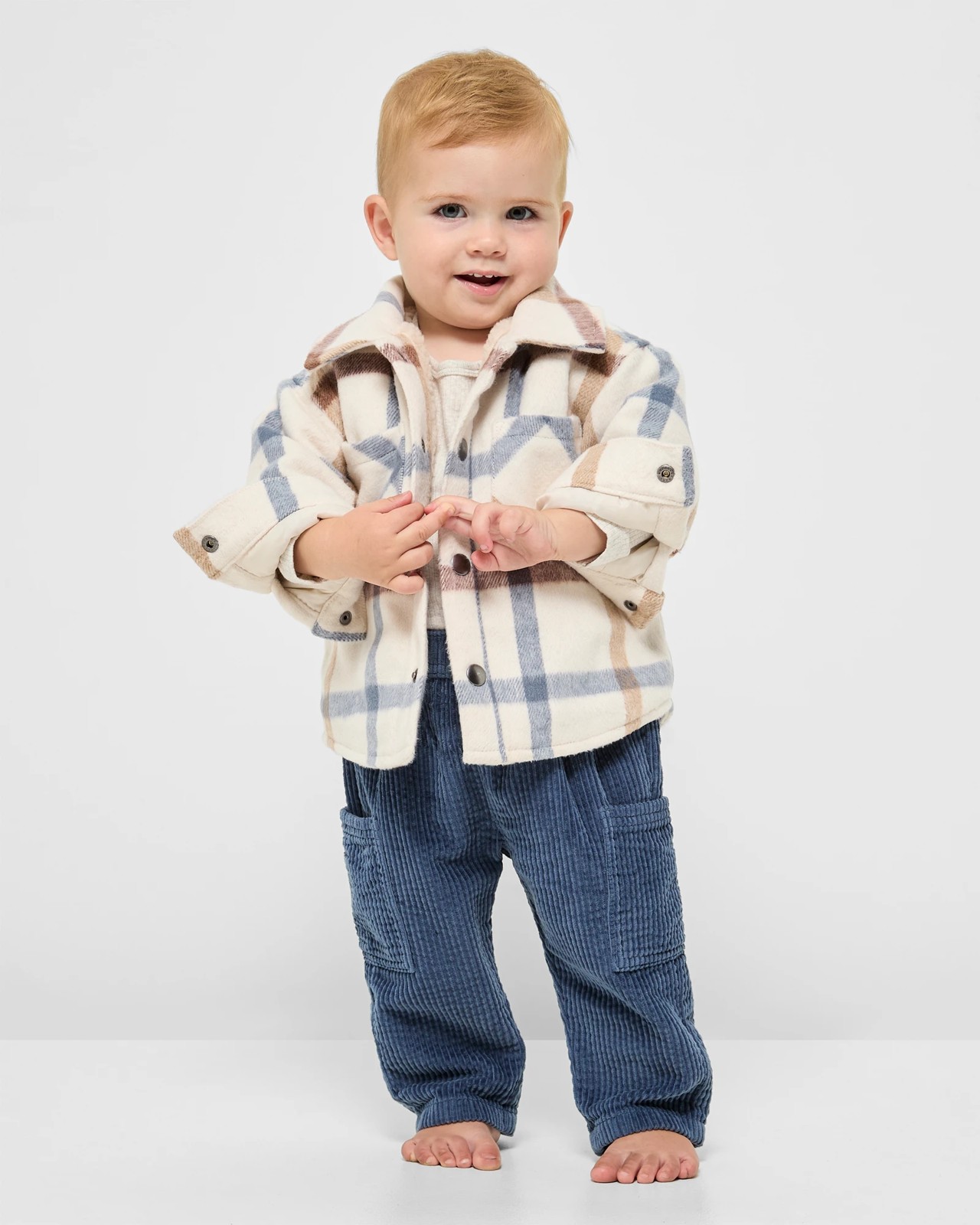 Discover cosy comfort and style with the Baby Checked Sherpa Lined Shacket. Perfect for keeping your little one warm on chilly days, this shacket features a soft brushed flannel check and a cosy sherpa lining. The collared neckline along with the press stud front and cuff sleeves add a classic touch, while the patch pockets make it functional. Its regular fit and curved hemline ensure a snug fit. Make this charming piece your baby's go-to outerwear for a playful and adorable look.