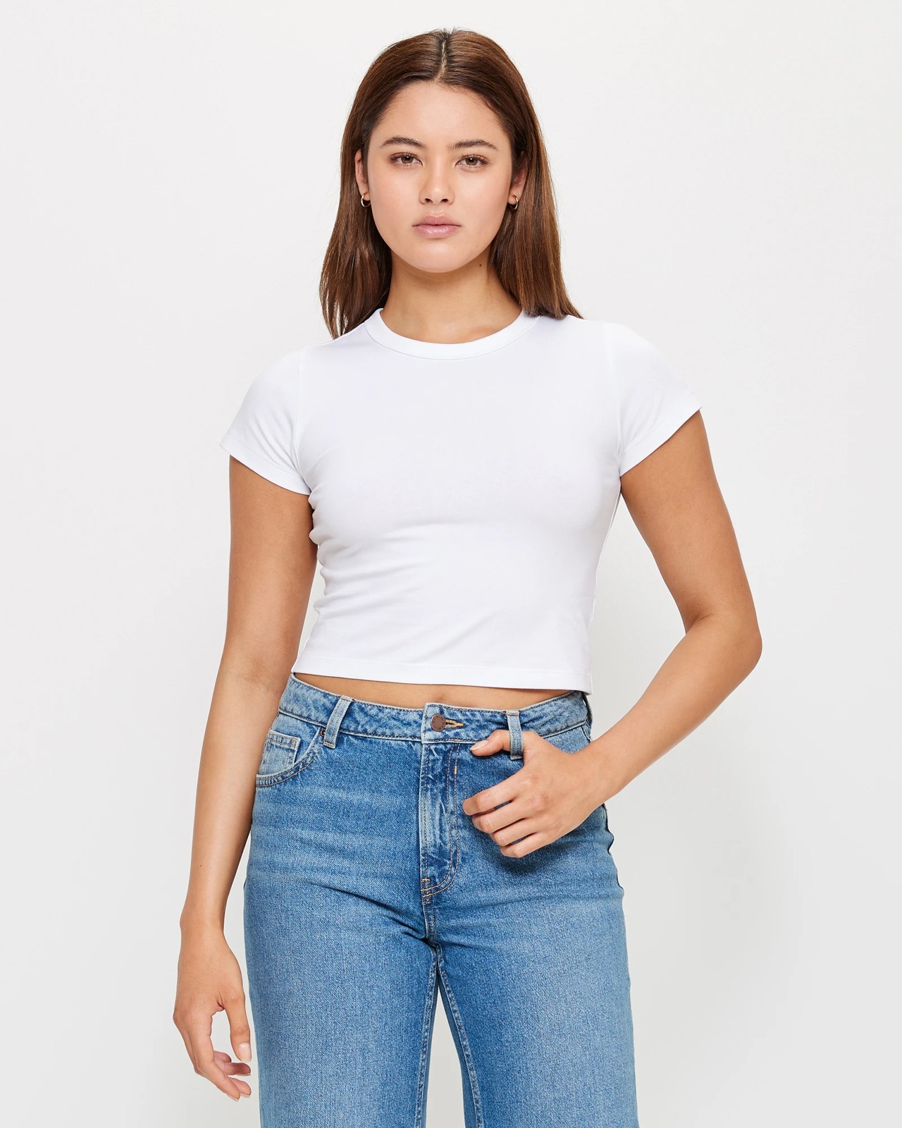 The Lily Loves baby crop t-shirt is a must-have for any summer wardrobe. It is made from a stretchy breathable cotton, has a comfy crew neckline, a cropped length and short sleeves.