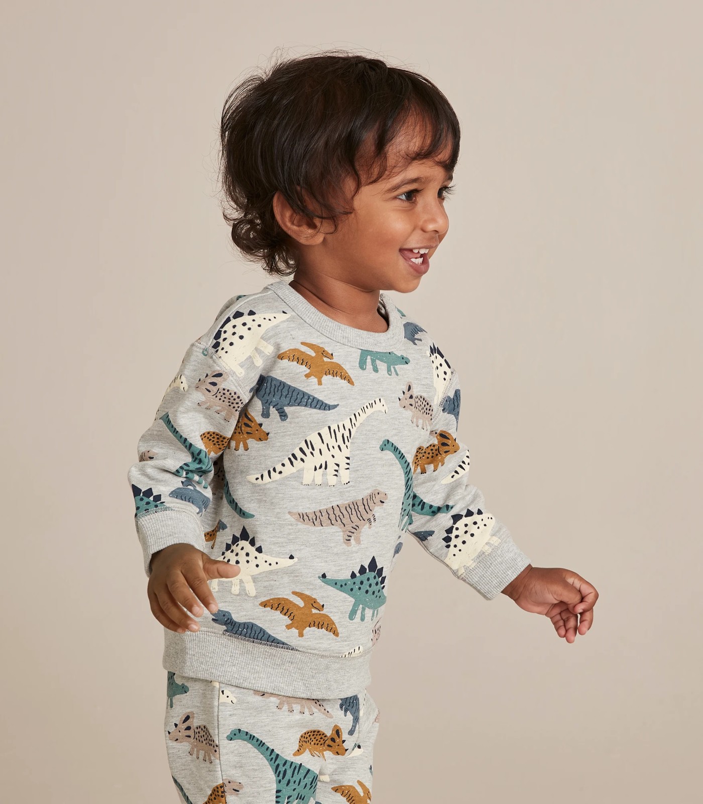 A great basic for his wardrobe comes the ribbed crew Baby Dinosaur Jumper featuring an all over dinosaur print, ribbed trims and fleece lining for extra comfort and warmth.