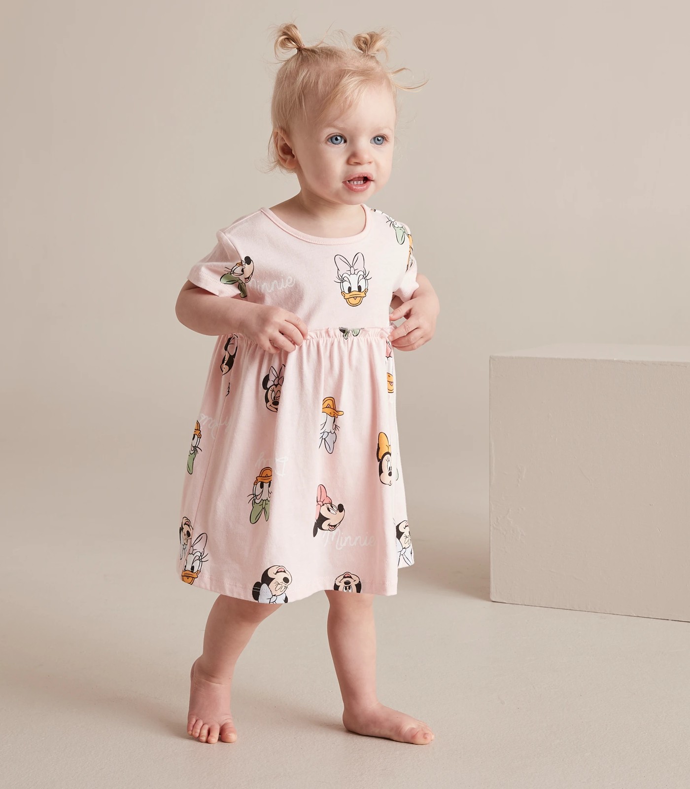 Crafted from soft cotton and with an all over print of everyones favourite Disney characters, comes the pink Baby Disney Jersey Dress.