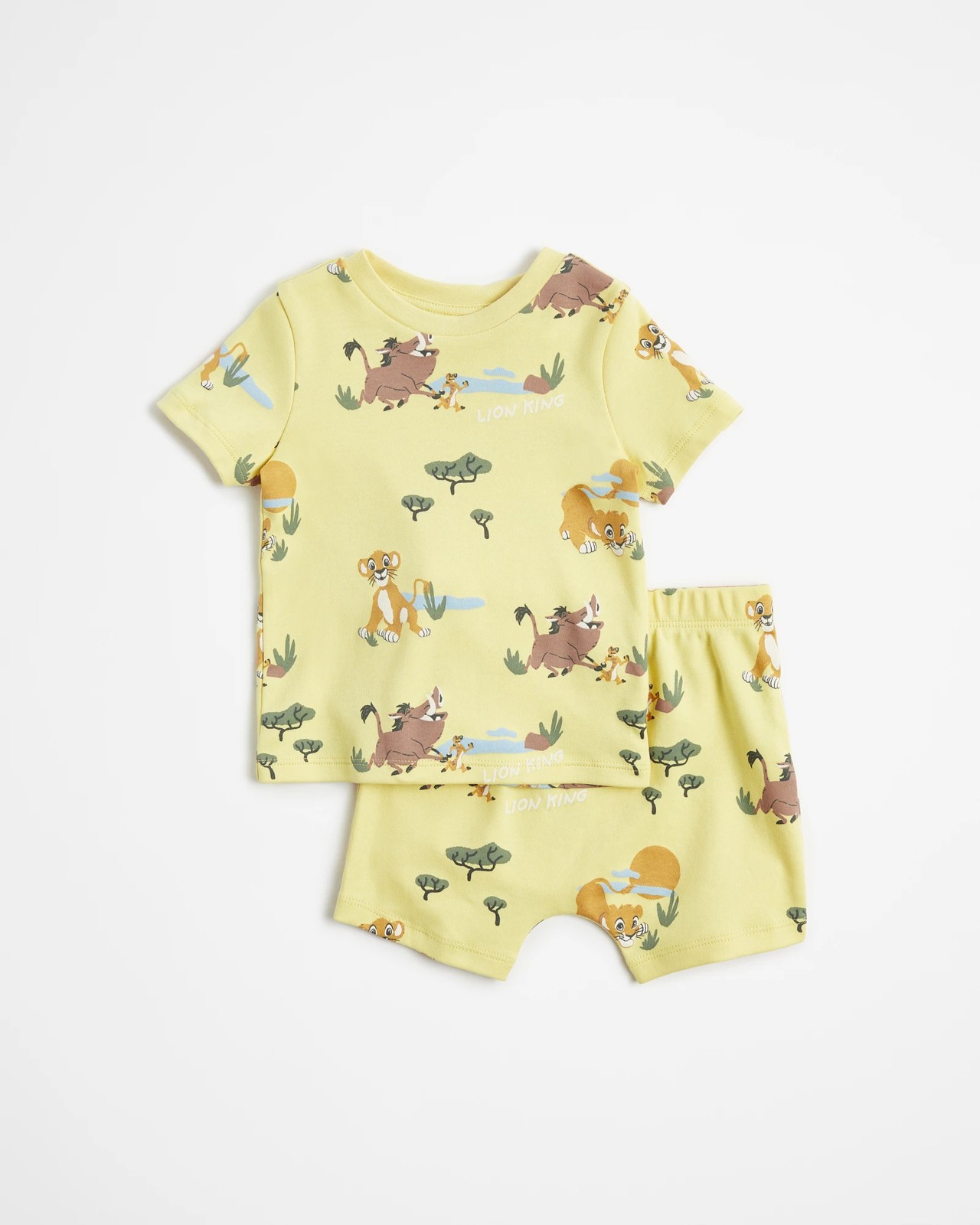 This two-piece pyjama set from Disney Lion King is perfect for any little one who loves snuggling up in fun prints. Crafted from a cotton rich fabric, this set features a regular fit, with a ribbed crew neck and short sleeves. The top has an all-over Disney Lion King print, and the matching shorts have an elastic waistband for a comfortable fit. With its bright yellow colour, this pyjama set is sure to become their favourite for bedtime!