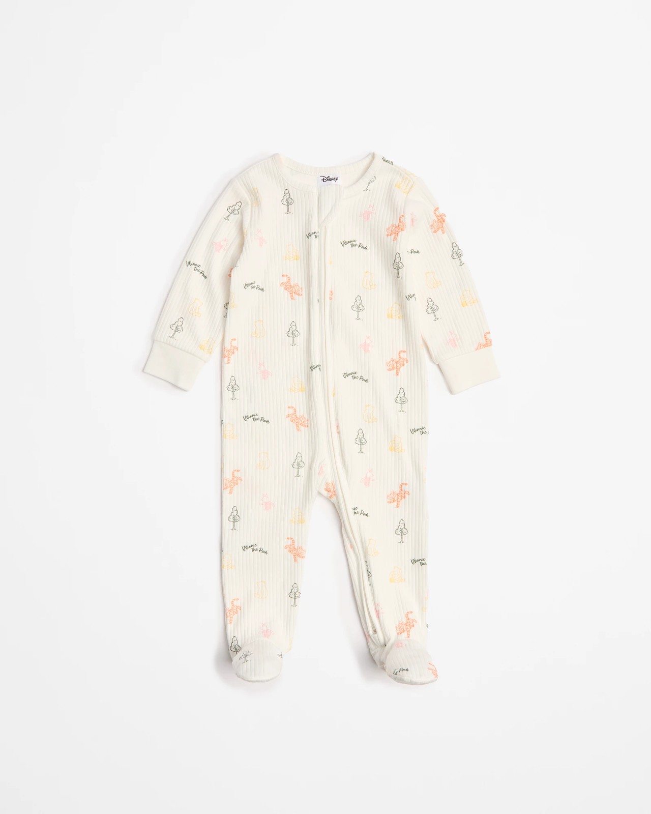 Nestle your little one in the delightful world of Winnie the Pooh with this charming coverall. Made from soft, cotton with stretch material, it provides a comfortable and fit. The coverall features an enchanting all-over print of Pooh and his friends, along with a cosy ribbed texture. Its round neck design and long sleeves with ribbed cuffs add to the snug feel. The convenient two-way zip front allows for easy and quick changing, keeping your baby content and comfortable. Ideal for both playful adventures and restful naps, this coverall is a must-have addition to your baby's wardrobe.