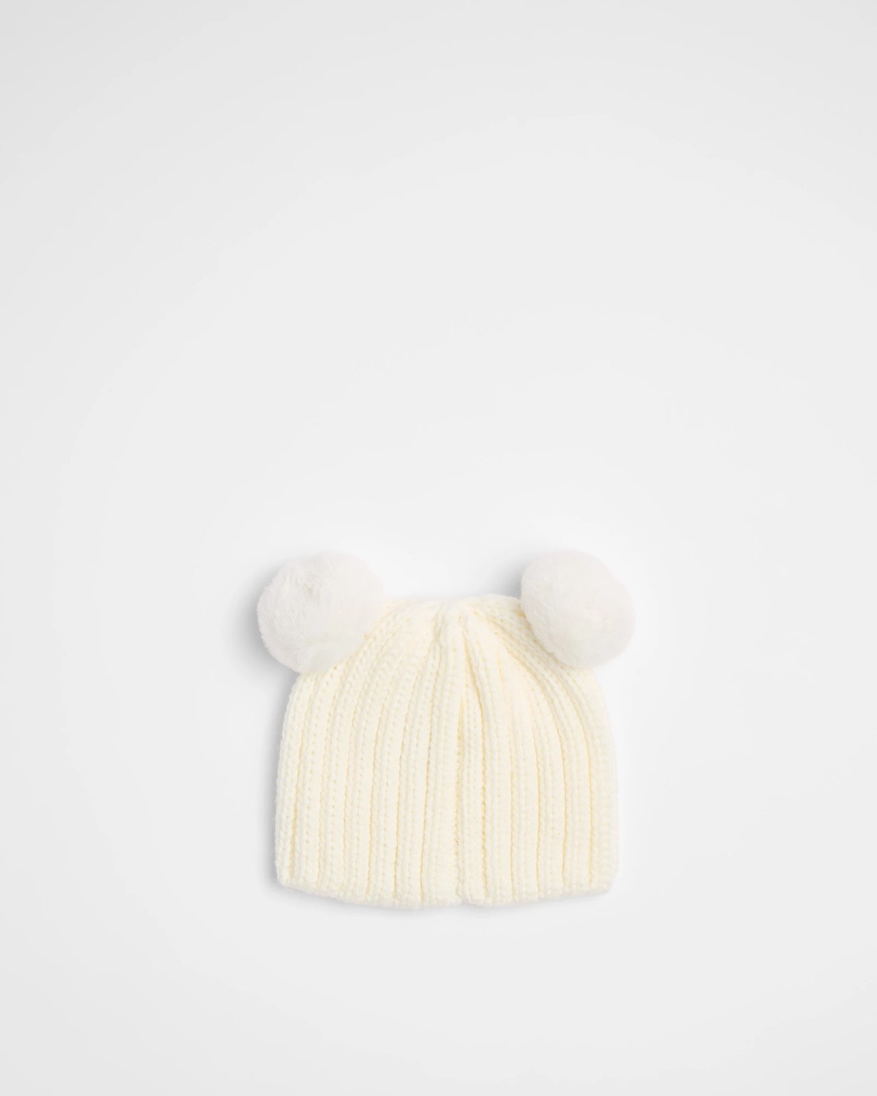 Two pom poms sits on top sides of beanie