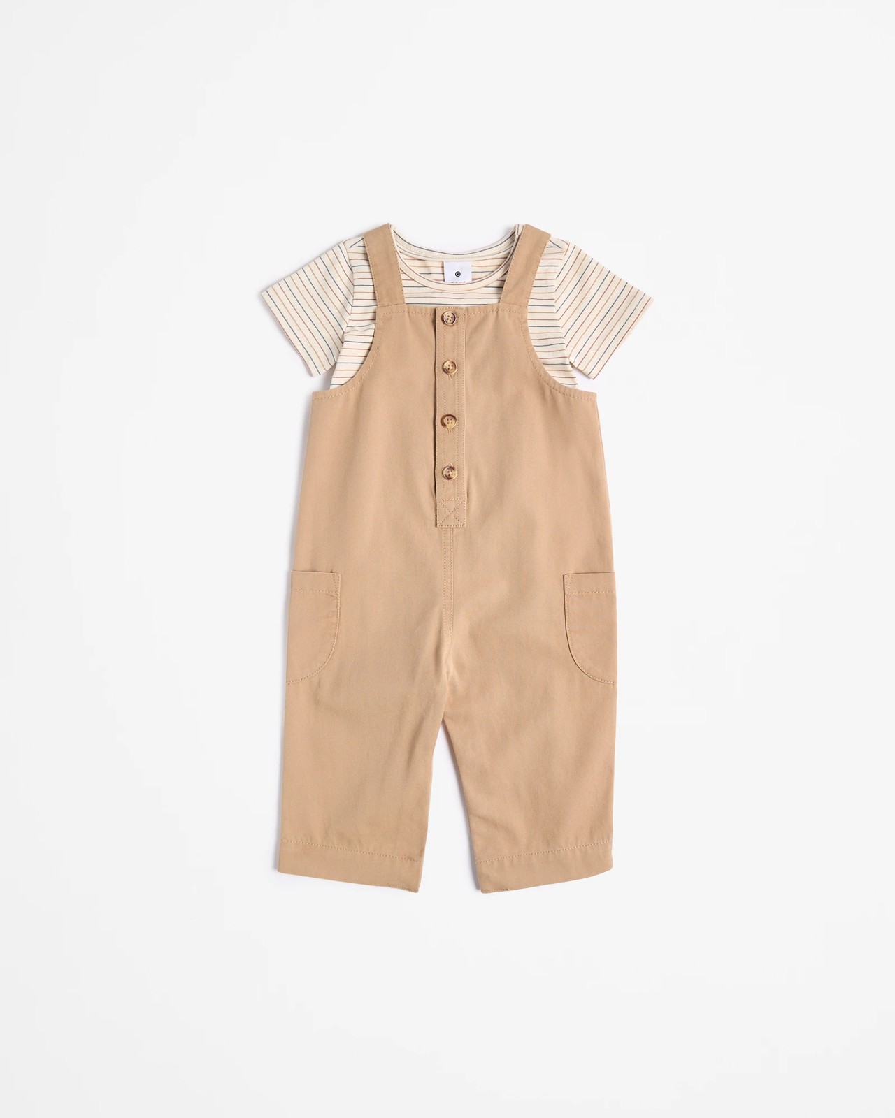 Discover the perfect combo for your little one with our charming Baby Dungaree and T-Shirt Set. The regular-fit dungaree, made of a twill weave, features shoulder straps, a button front, and practical patch pockets on the sides. Enhanced with snap studs between the legs for easy changing, it becomes a hassle-free favourite for mums and dads alike. Paired with an adorable stripe short-sleeve t-shirt, this 2-piece set brings style and convenience in spades. Dress your baby in this cute and comfortable outfit today.