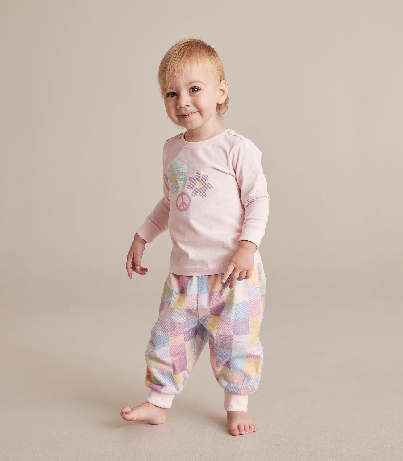 Collect the matching family set, with the pink Baby Family Matching Patchwork Cotton Pyjama Set, featuring a long sleeve top with large print to chest, matching all over print flannelette pants and crafted from soft cotton for all night comfort.