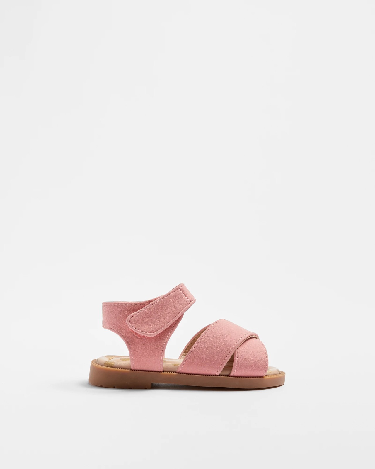 This adorable sandal is perfect for any little girl on the go! It features a synthetic upper, open toe, cross over strap upper, and self-fastening ankle strap which makes it easy to put on and take off. The back of the sandal has an open design with an adjustable ankle strap for a secure fit. The footbed is padded and stitched for comfort, while the flexible non-slip sole helps keep her steady. Let her explore in style with this Baby First Walker Cross Over Tab Strap Sandal from our collection!