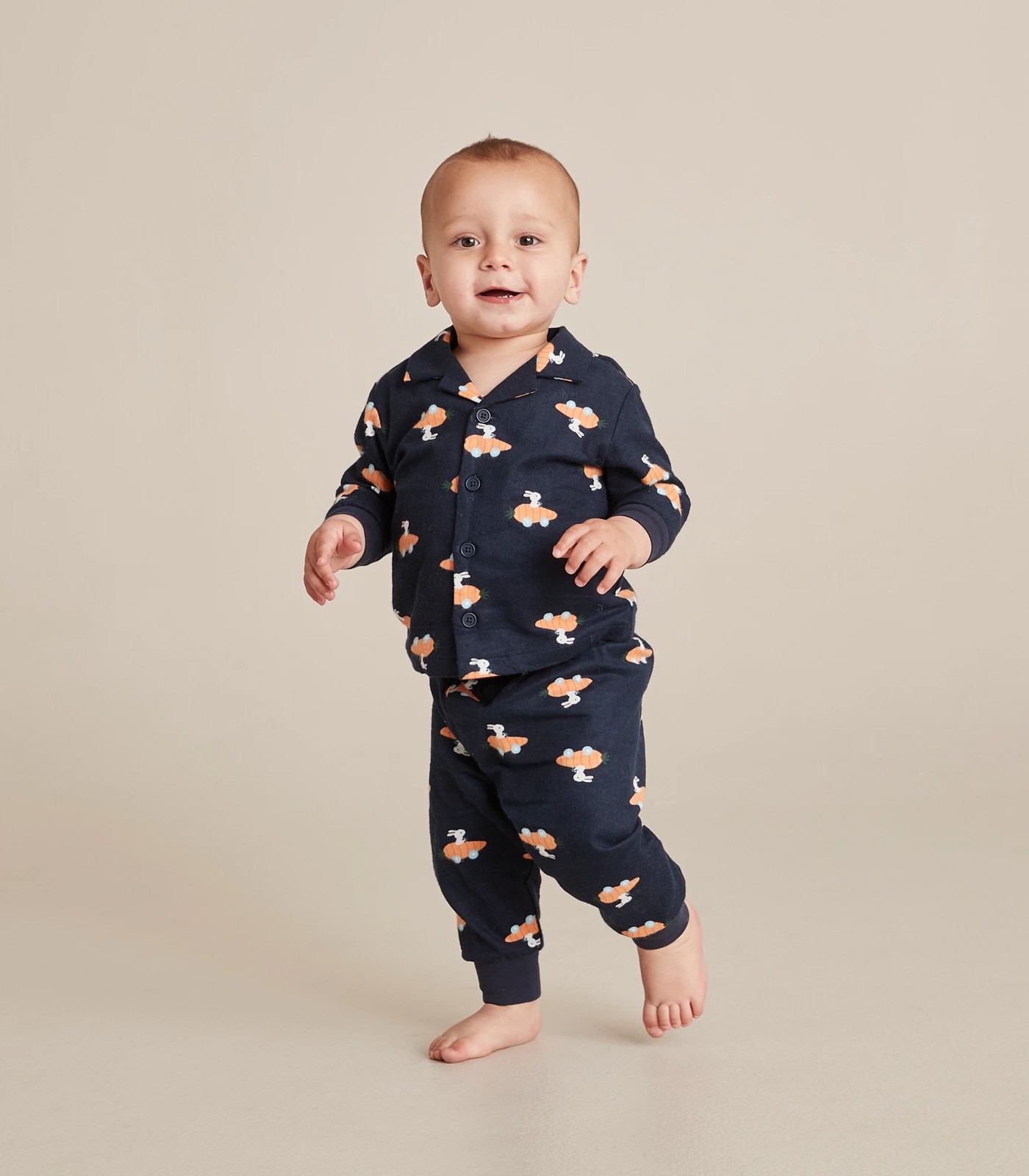 Bubs will sleep blissfully in the Baby Flannelette Cotton Pyjama Set, featuring a button up front, long sleeves with ribbed cuffs, matching pants and crafted from soft cotton for all night comfort.