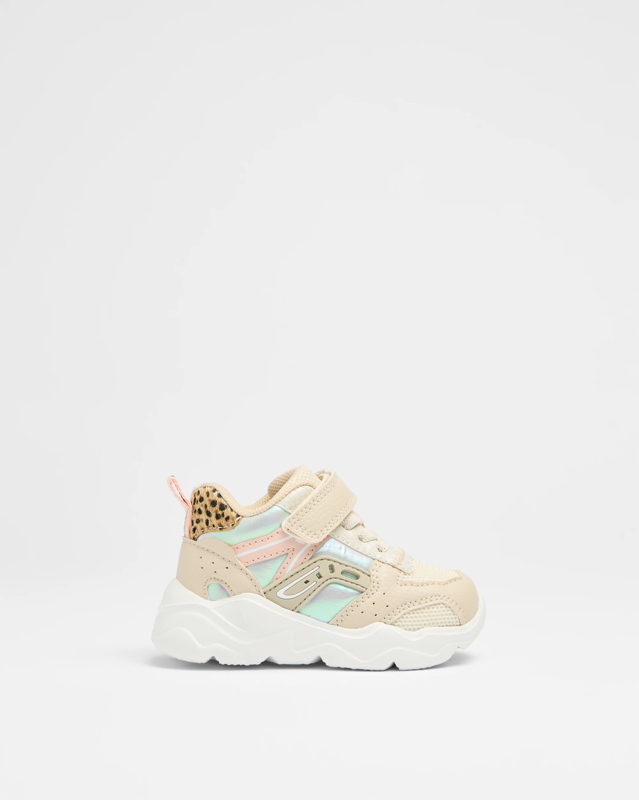 Let your baby's first steps be memorable in these adorable girls' first walker fashion sneakers. Designed to offer gentle support, the shoes feature a padded interior and a flexible fit, making them ideal for growing feet. The easy-to-use ankle tab and elastic laces allow for quick changes, so you spend less time fussing and more time cherishing your little one’s milestones. With a soft sole and breathable design, these sneakers ensure comfort whether she's taking her first steps indoors or out. Make every new adventure special and comfortable with these charming trainers.