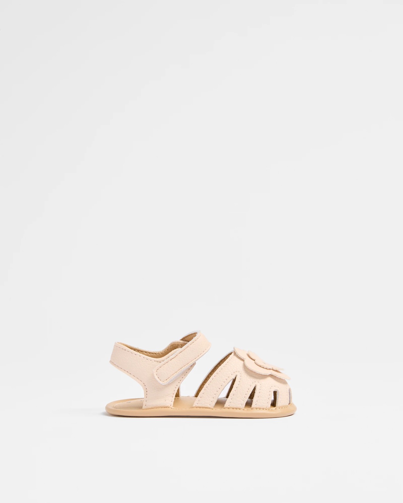 Witness the joy on your baby girl's face as she takes her first steps in these delightful fisherman sandals. Made with a synthetic upper and charming flower details, these sandals combine style with comfort. The closed round toe and secure ankle strap ensure her feet are protected while allowing for air flow. Perfect for those precious early walking adventures, the padded footbed and flexible sole will support her every totter. Make each step a memorable one by choosing these first walker sandals.