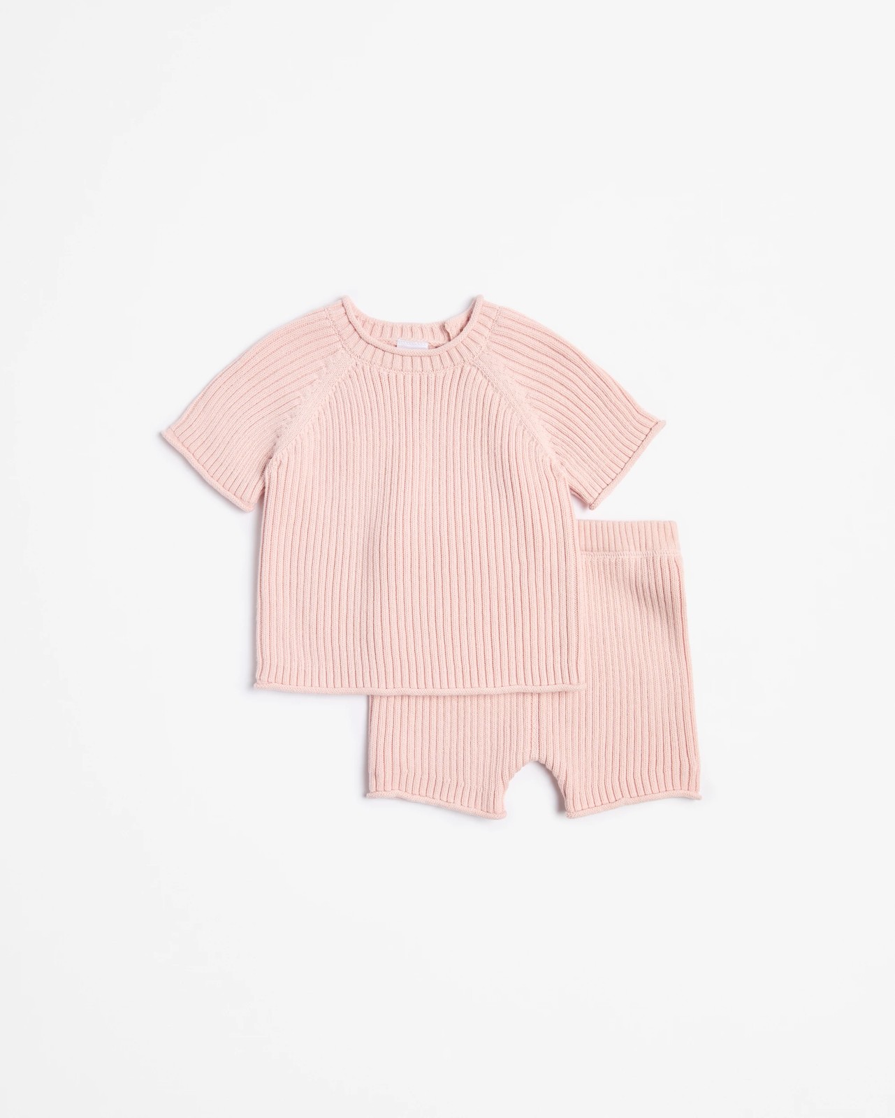 Give your baby girl a beautiful and snug outfit with this rib knit top and shorts set. Made from soft organic cotton, this two-piece ensemble offers a regular fit, featuring a ribbed knit texture for added style. The set includes an elastic waistband and rolled hems, ensuring comfort and a secure fit for your little one all day long. Ideal for daily adventures, this outfit is a must-have for your baby's wardrobe.