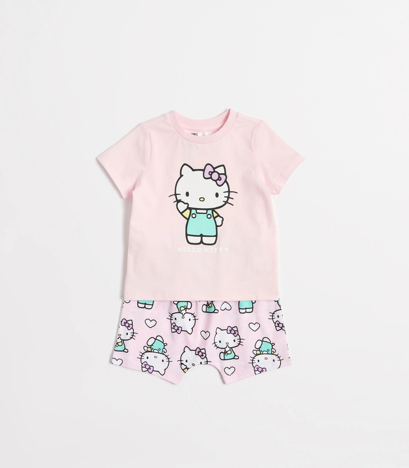 Say hello to sweet dreams with our Baby Hello Kitty Cotton Pyjama Set. This delightful sleepwear features a charming Hello Kitty design that will bring joy to bedtime. Made from soft cotton, it ensures a comfortable regular fit for your little one's restful nights. The set includes a pink top with a cheerful Hello Kitty print on the front and matching shorts with an all-over print and elastic waistband. Perfect for young Hello Kitty fans, this pyjama set promises to make nighttime more fun. Add this adorable set to your child's sleepwear collection today!