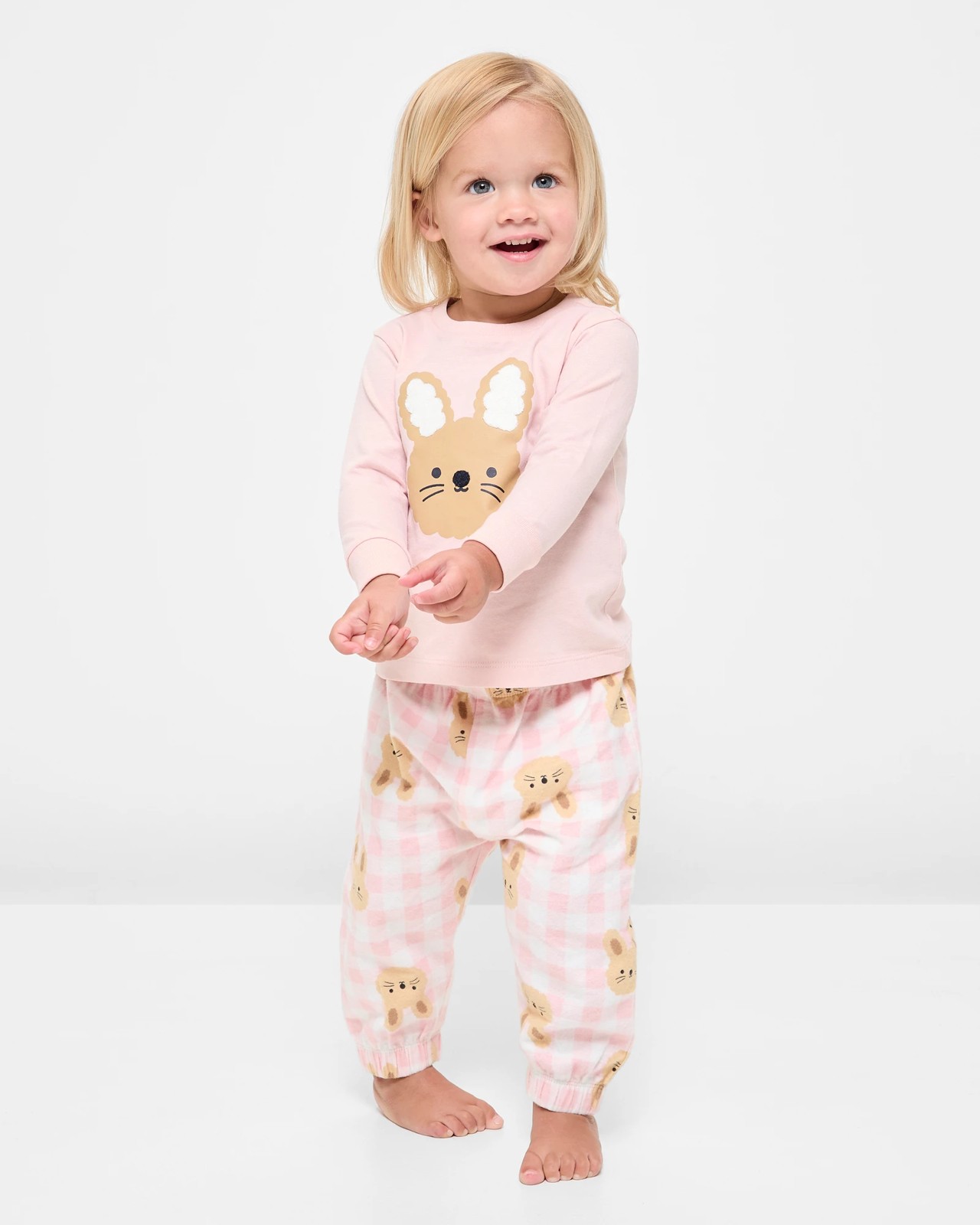 Ensure your little one has a cosy and delightful night with our Baby Knit and Flannelette Cotton Pyjama Set. This charming two-piece set, made from soft cotton knit and flannel, features a delightful pink colour and an adorable large bunny face print with boucle detailing. The long sleeves and ribbed cuffs provide snug warmth, while the elastic waistband and cuffed ankles offer comfort throughout the night. The matching trousers are decorated with a playful all-over bunny print, adding a touch of fun to bedtime. Perfect for keeping your baby comfortable and happy, these pyjamas are a lovely addition to their nightly routine. Don't wait, add this enchanting set to your baby's wardrobe today.