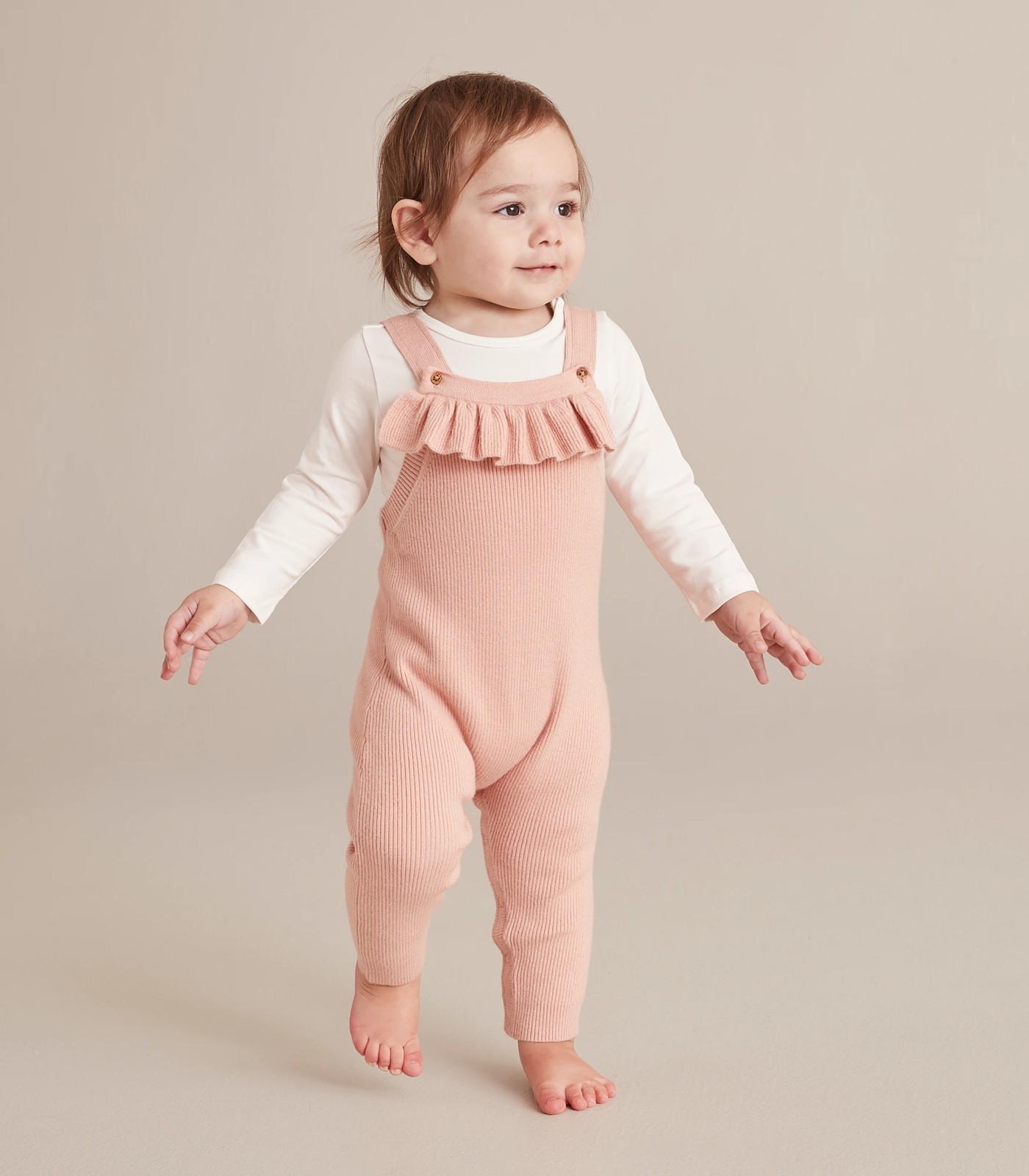 Great as a baby gift or for your own bubs, comes this pink knit overall and long sleeve print bodysuit 2 piece set.
