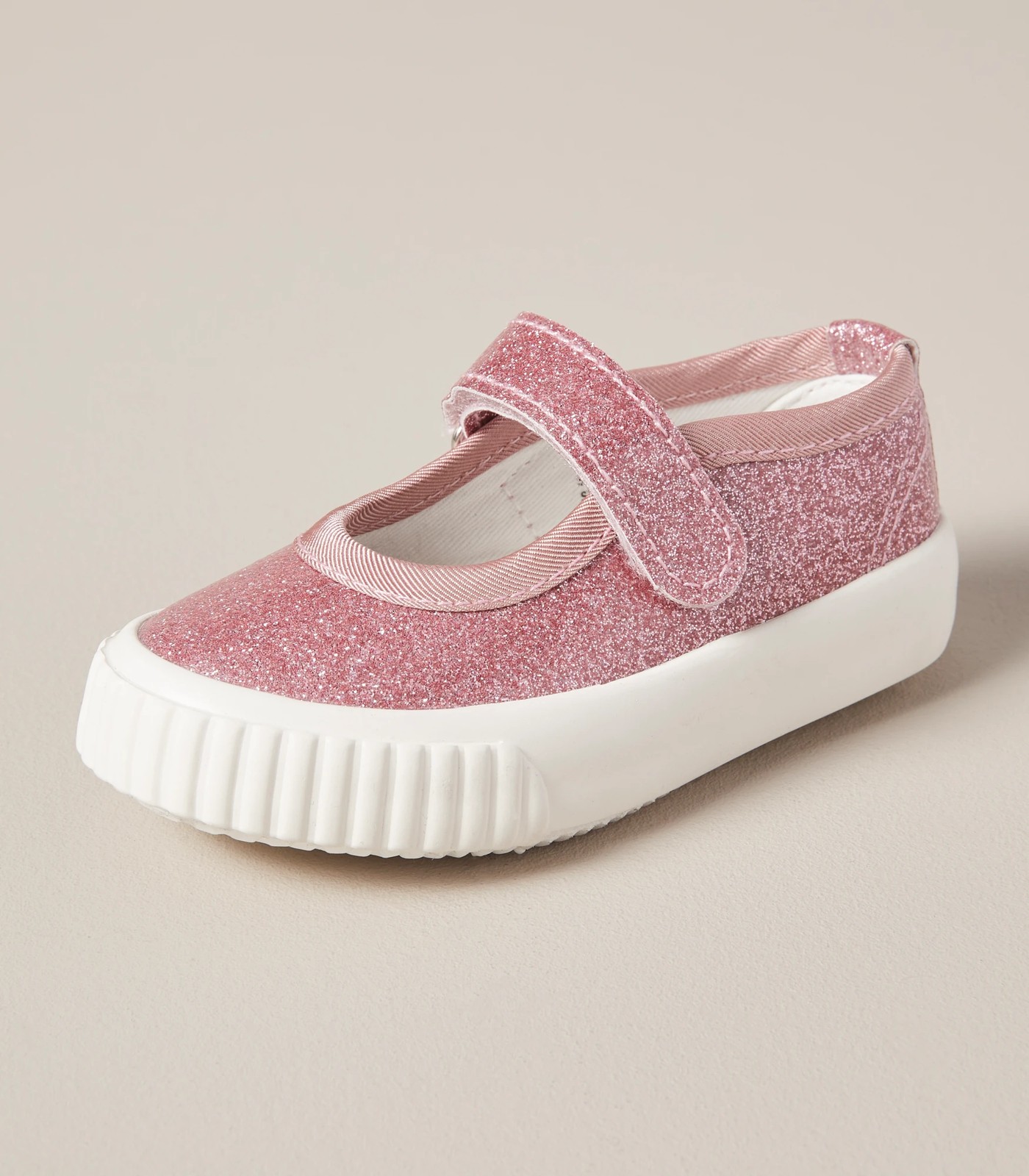 The baby Mary Jane shoes feature an all over glitter design and has a touch fastener strap. They have extra padding added to the insock for improved underfoot comfort.