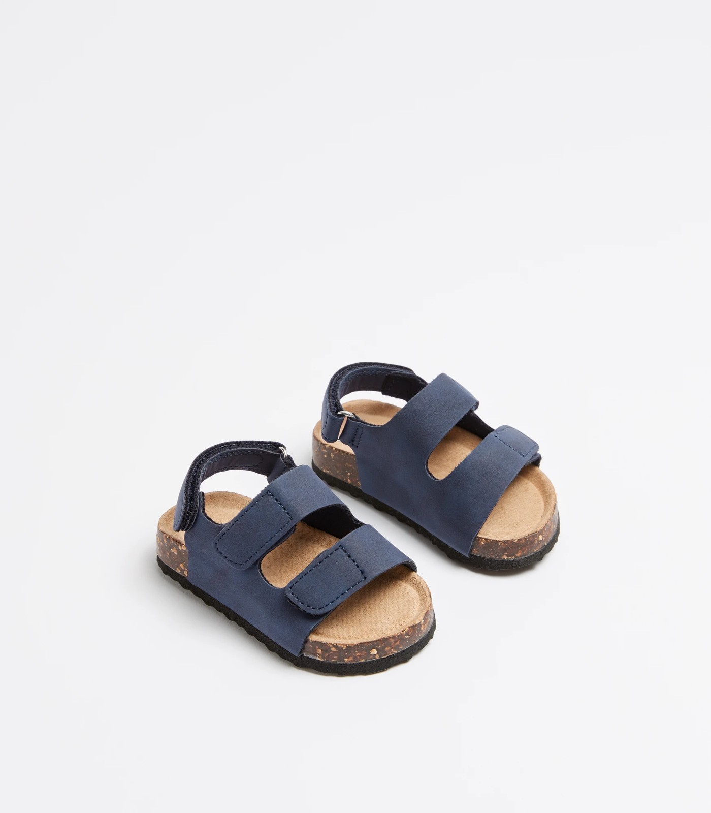 The perfect slip on shoe for the warmer months, the baby moulded cork sandals are made for everyday wear, have touch fastening straps across the top of the foot and around the ankle for support, a moulded cork inner sole and non-slip soles.