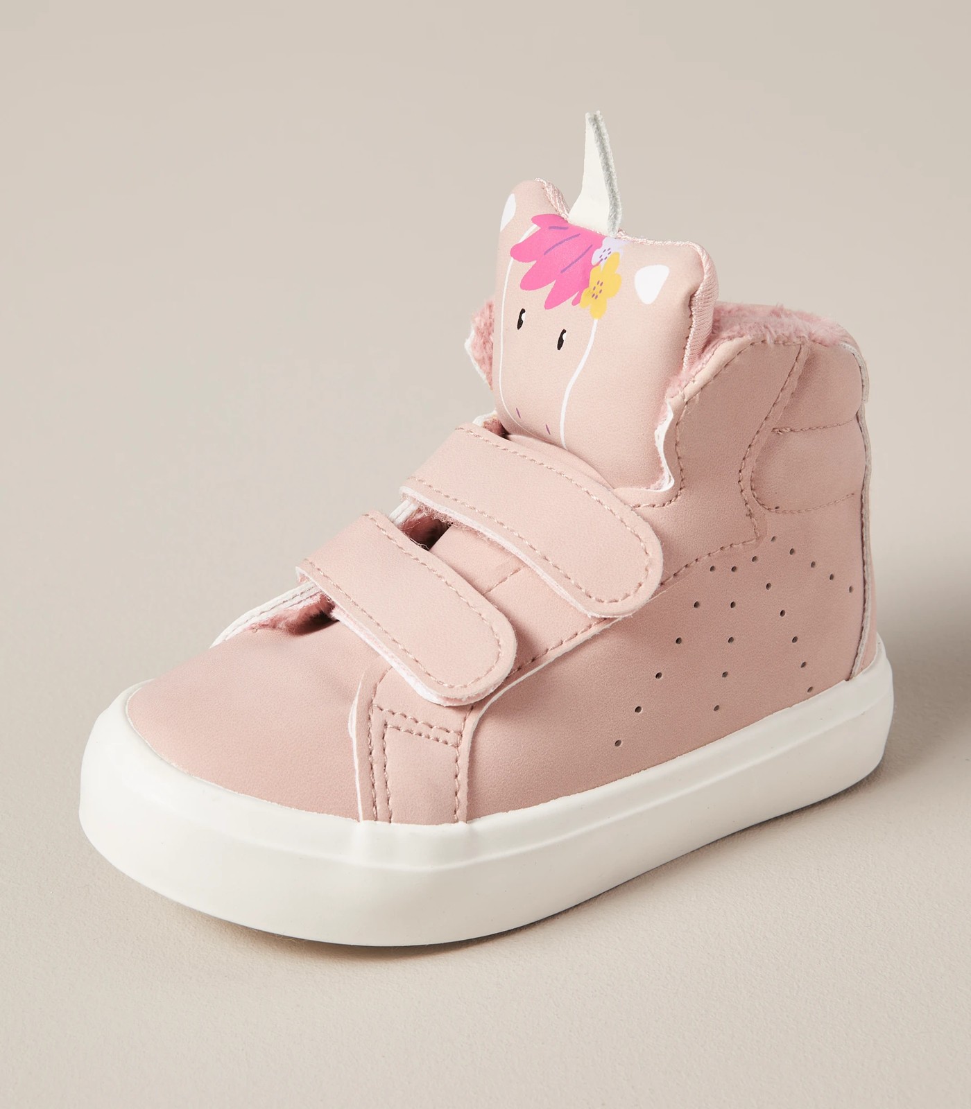 The baby high top sneakers are great for pre-walkers with their flexible sole, double touch self fastening tabs and a novelty design.