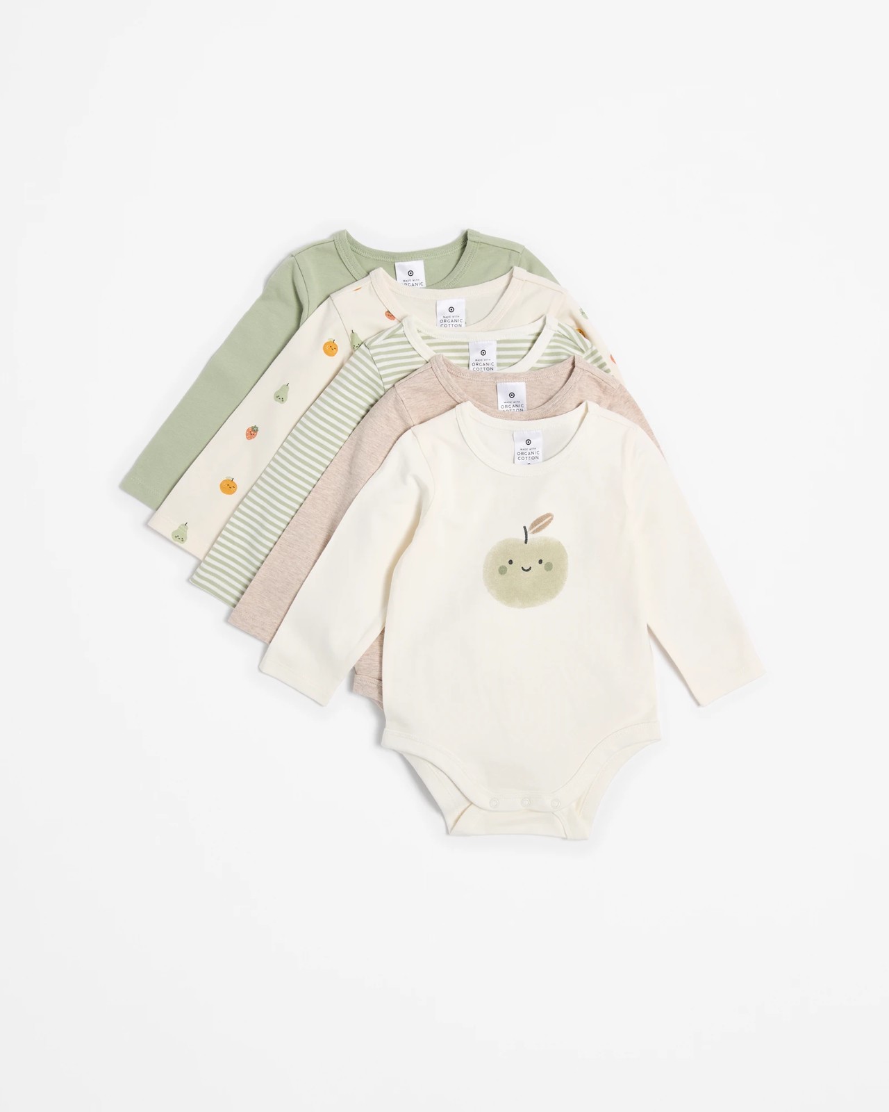Baby Organic Cotton Bodysuits 5 Pack - Fruit Cloud