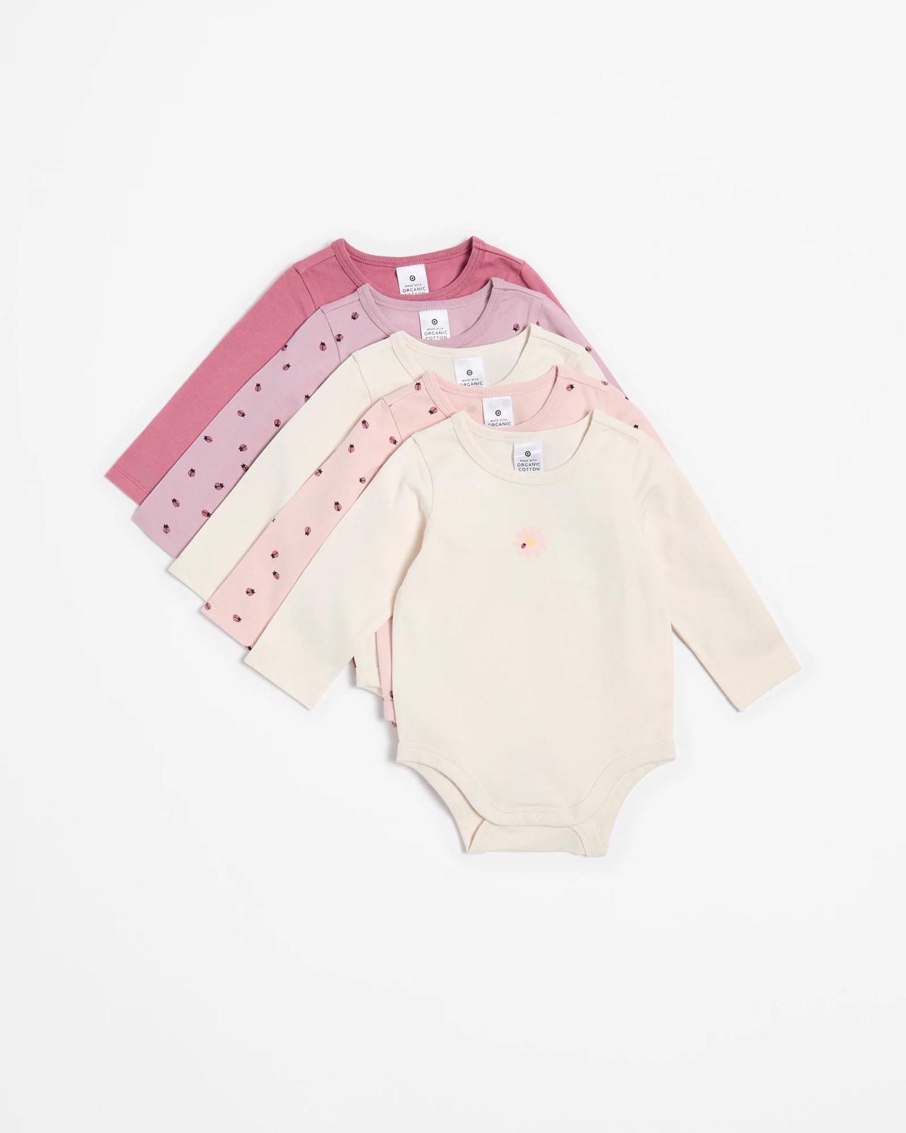 Discover the perfect blend of comfort and style with our Baby Organic Cotton Bodysuits 5 Pack. Made from soft, breathable organic cotton, these bodysuits ensure your little one stays cosy all day long. Featuring a range of charming colours and prints, each bodysuit is designed with a regular fit, round neck, and long sleeves for extra warmth. The handy press studs at the crotch make changing times quick and easy. Bring a touch of joy to your baby's wardrobe and make every day special with these adorable essentials. Order yours today and experience the ultimate in baby comfort and convenience.