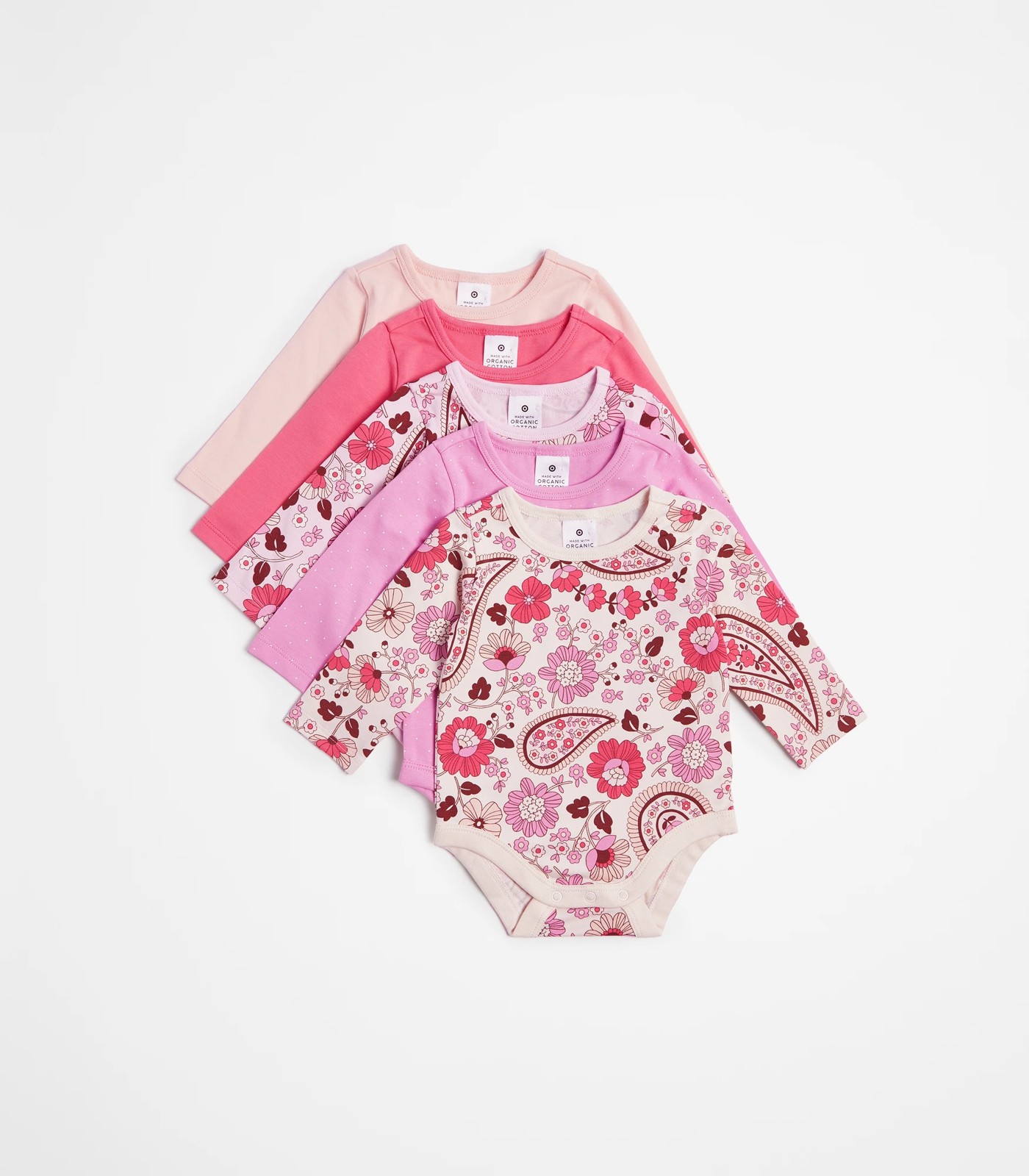 Introducing the 5 pack of organic cotton bodysuits from the baby range at Target! These bodysuits have been carefully designed with comfort in mind, featuring a regular fit and soft cotton fabric that will keep your little one feeling cosy all day long. With a selection of colourful prints and bright colours, your baby will be the centre of attention for all the right reasons! The bodysuits also have a round neck, short sleeves, and press studs to the crotch, making them both comfortable and practical. Perfect for layering up or wearing on their own, this 5 pack is an essential addition to any baby’s wardrobe. Treat your little one to ultimate comfort and style with these organic cotton bodysuits.