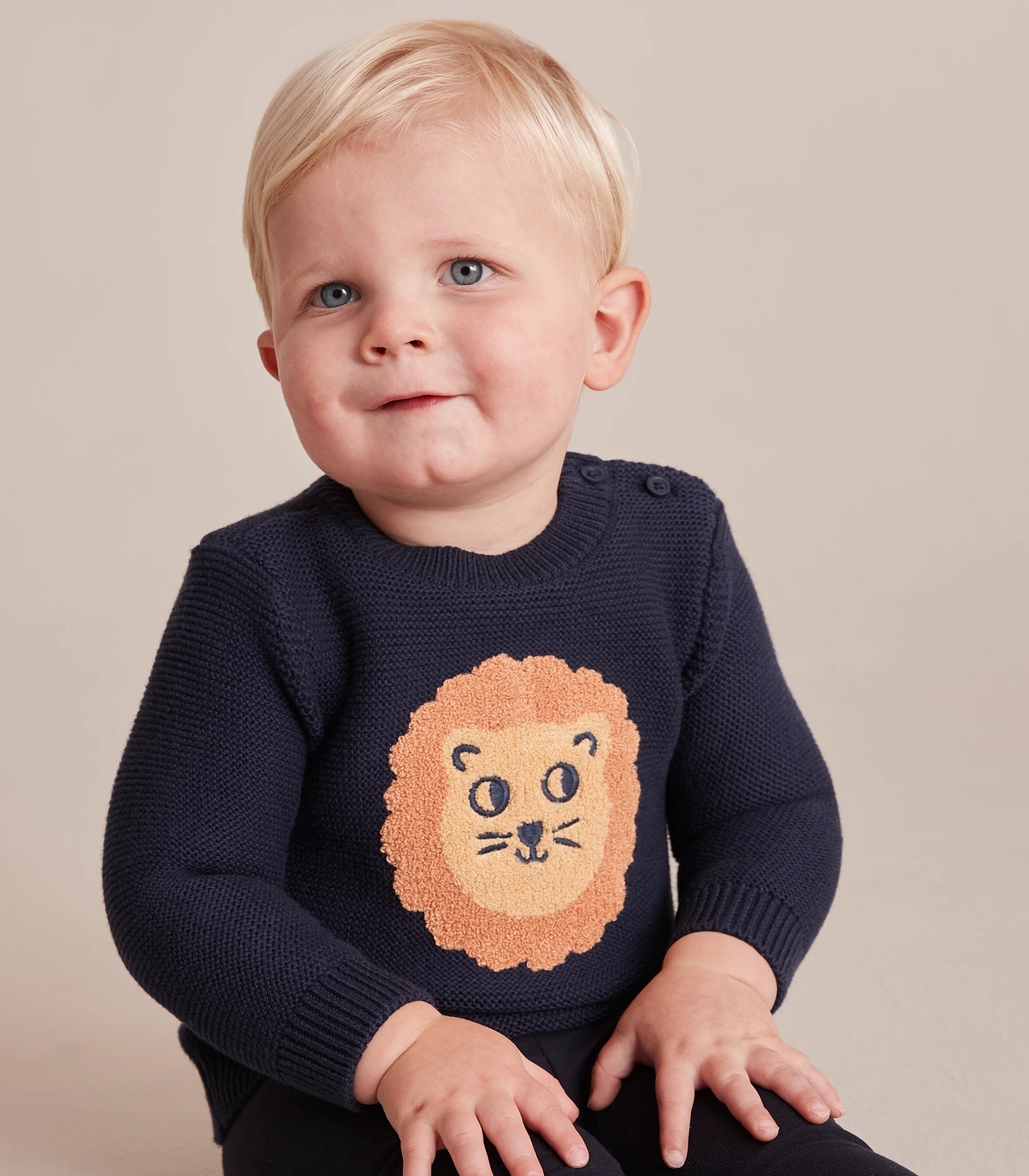 Crafted from certified cotton that's grown free from harmful chemicals, is soft to touch and comfortable to wear, comes the Baby Organic Cotton Bouclé Lion Jumper that is a great staple in babys wardrobe this season.