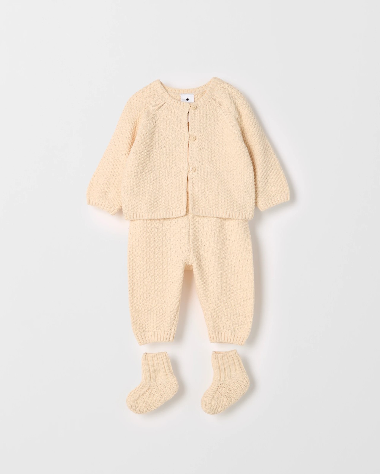 Baby Organic Cotton Cardigan, Pants and Bootie Knit Set