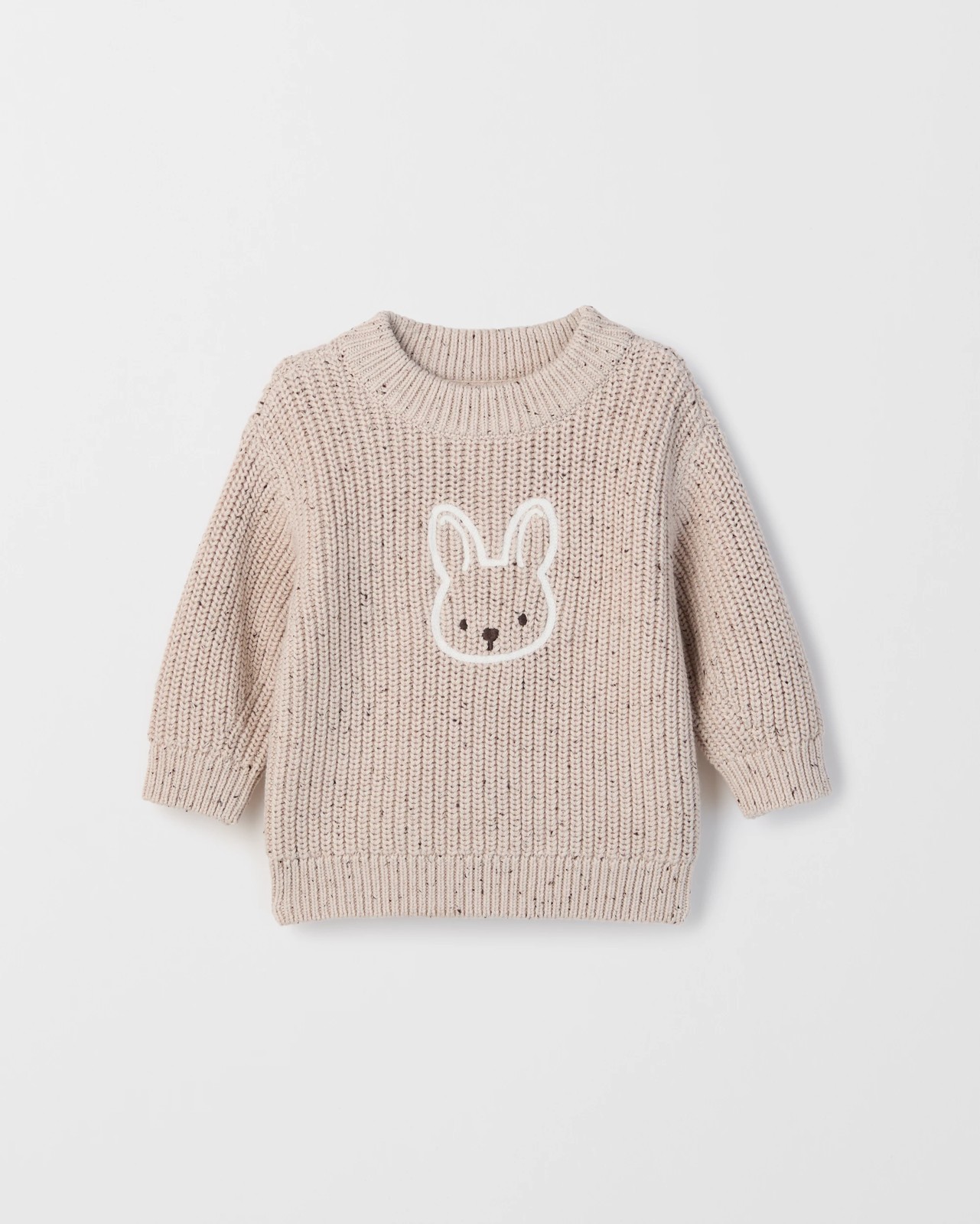 Your little one will love the gentle softness of the Baby Organic Cotton Fisherman's Rib Sweater. Made from organic cotton rich fabric, it’s wonderfully kind on delicate skin, ensuring comfort all day long. The fisherman’s rib pattern offers classic texture and style, while a regular fit and drop shoulders make dressing and movement easy. Featuring a sweet bunny motif on the front and ribbed cuffs and hem for a snug finish, this jumper is a charming option for playdates or casual outings. Bring a smile to your baby's day with a sweater that's as adorable as it is comfortable. Make it yours and see your child enjoy both warmth and style.