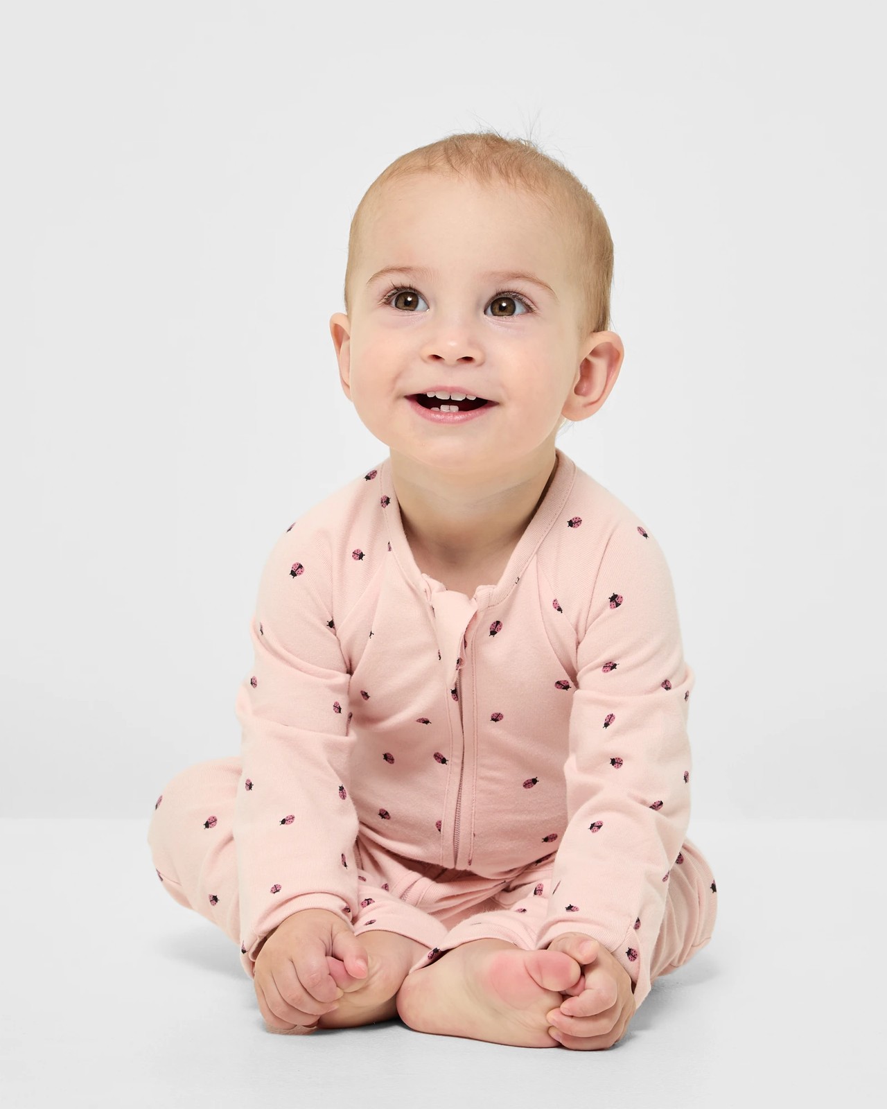 Snuggle your baby in this charming organic cotton coverall, designed with a playful ladybug print that adds a touch of cuteness. The thoughtful details include long raglan sleeves for ease of movement and a convenient two-way zip front, making nappy changes a breeze. The practical mitten and feet fold-over cuffs keep your little one warm and cosy from head to toe. Perfect for both day and night, this coverall is a must-have for any baby wardrobe. Treat your little bundle of joy to comfort and style with this adorable piece today.