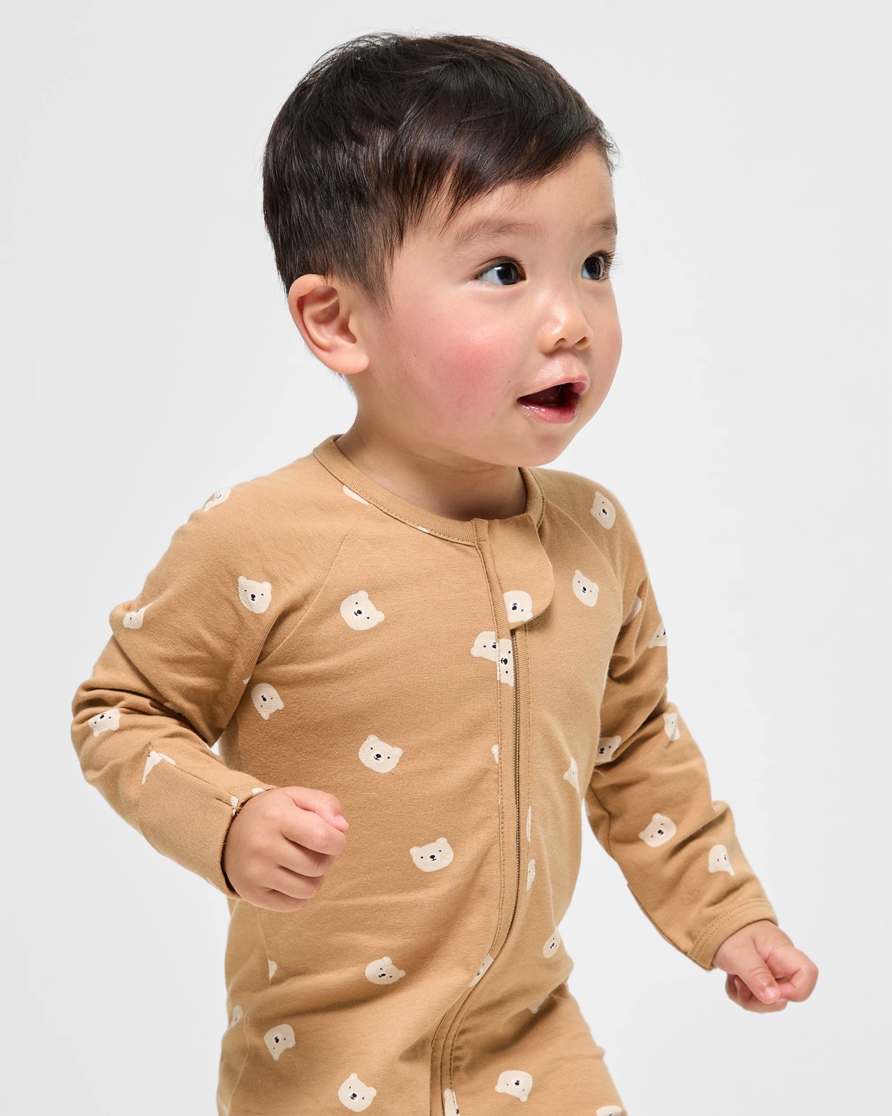 Keep your little one cosy in our Baby Organic Cotton Footless Coverall featuring delightful print. Made from soft organic cotton, this coverall provides a comfortable and gentle fit that's perfect for sensitive skin. The two-way zip front makes changing hassle-free, and the fold-over cuffs on the mittens and feet add an extra layer of warmth and protection. With its round neck and long raglan sleeves, your baby will enjoy maximum movement and comfort. Treat your baby to the best in style and practicality. Grab yours today!
