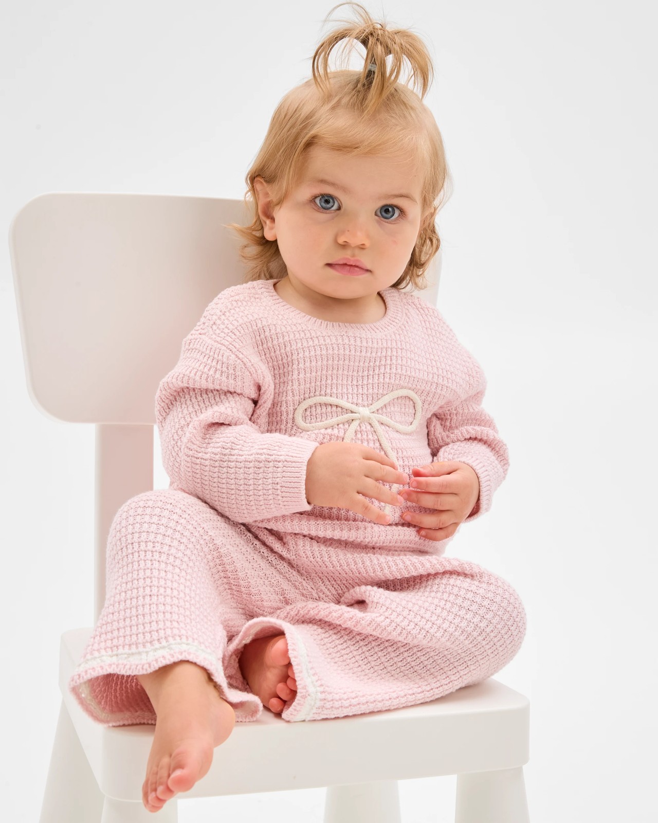 Envelop your little one in the ultimate comfort with our Baby Organic Cotton Knit Top & Pants 2 Piece Set. Made from soft, breathable cotton, this adorable ensemble features a textured design that feels amazing on delicate baby skin. The set includes a round-neck, long-sleeved top with a charming scalloped hem, and matching wide-leg trousers with an elastic waistband for easy changes. Perfect for both playtime and naptime, this cosy duo is a must-have addition to your baby's wardrobe. Treat your baby to unparalleled comfort and style today.