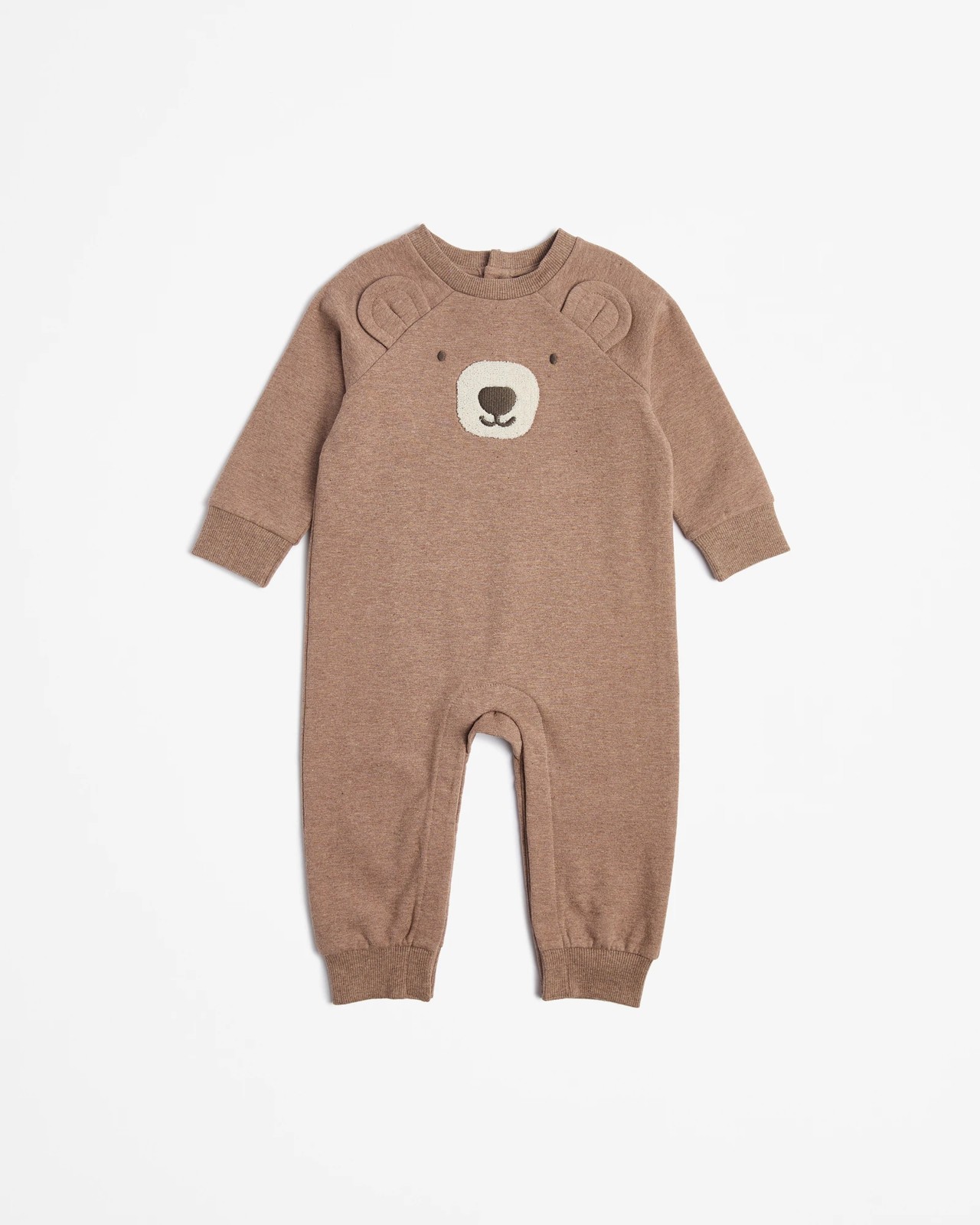 Ensure your little one stays cosy with our Baby Organic Cotton Novelty Bear Unisex Fleece Coverall. Made from soft cotton with a hint of stretch, this coverall provides a comfortable fit that adapts to your baby's movements. The adorable bear design features playful 3D ears and detailed boucle and embroidered face, adding a touch of charm to their attire. The practical round neck and back neck button opening make dressing a breeze, while the long raglan sleeves and press studs at the crotch offer convenience during nappy changes. Finished with snug rib trims and a fleece lining, this coverall is ideal for keeping your baby warm and content. Treat your baby to both style and comfort.