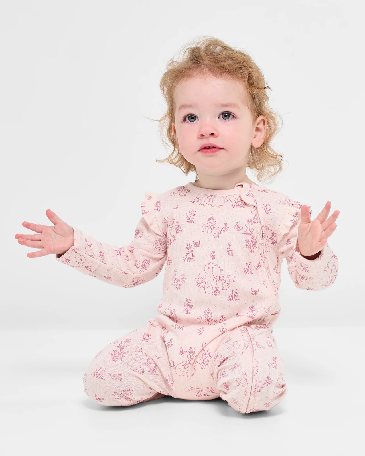 Discover unparalleled comfort for your little one with our Baby Organic Cotton Pointelle Zip Coverall, lovingly adorned with a charming bunny design. This coverall features a round neck and long sleeves with delightful shoulder frill details, providing both style and ease for daily wear. The fold-over mitts and two-way zip front ensure fuss-free changes and snug protection. Made from the finest organic cotton, the pointelle texture adds a touch of sophistication, while the ribbed leg cuffs offer a secure fit. Perfect for active play or cosy cuddles, this coverall is an everyday essential for your baby. Embrace comfort and style today.