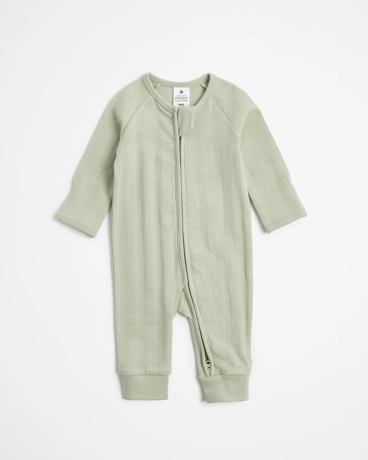 Baby Organic Cotton Pointelle Zip Coverall - Light Green