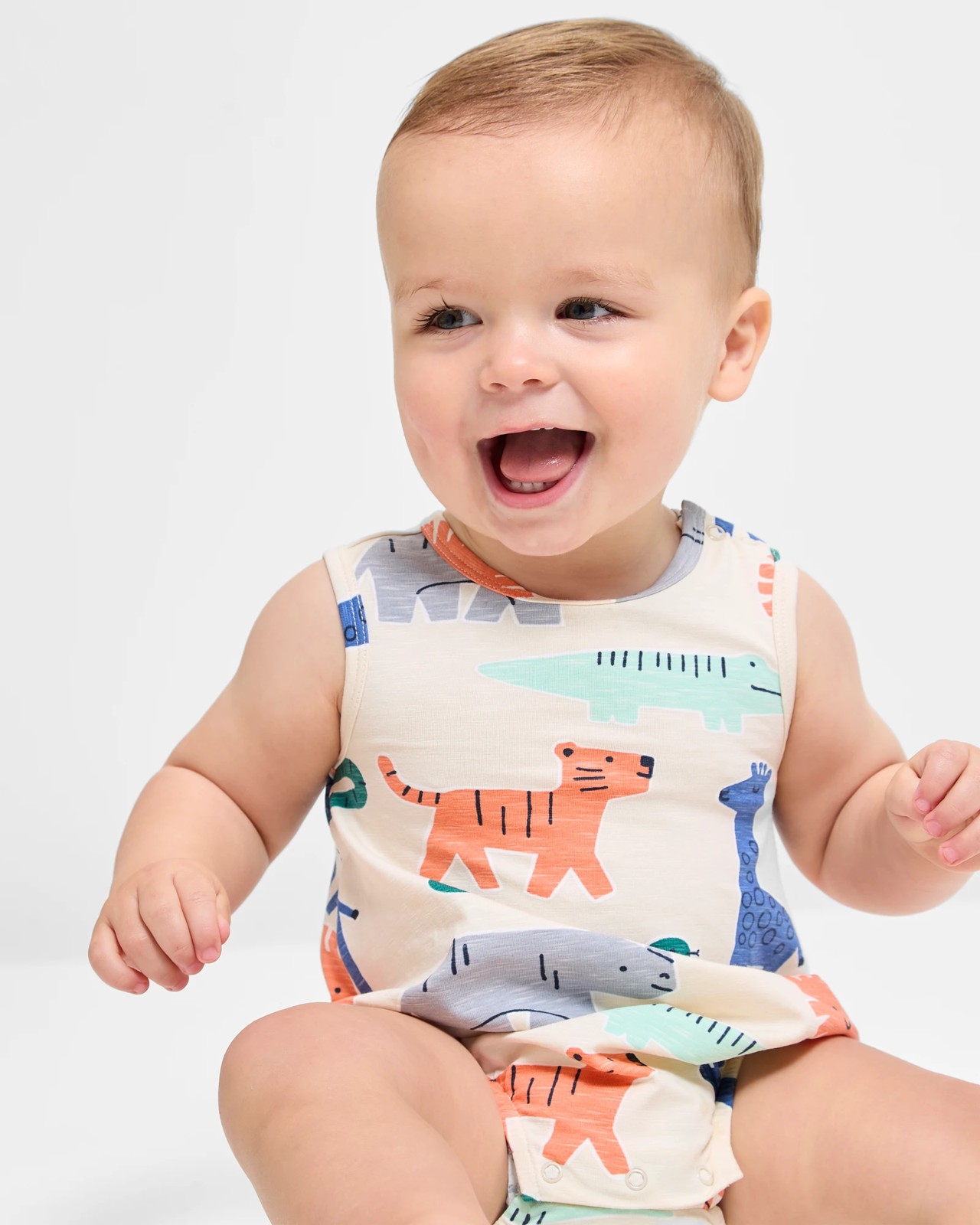 Discover the charm of this delightful bubble bodysuit made from organic cotton, ideal for your baby. Designed for a regular fit with a round neck, it ensures comfort throughout the day. The sleeveless style with convenient press studs on one shoulder makes dressing and undressing effortless. Adorned with a playful all-over print, it features ribbed trims and elastic leg openings for a secure fit. The press studs at the crotch simplify nappy changes, making it a must-have for new parents.
