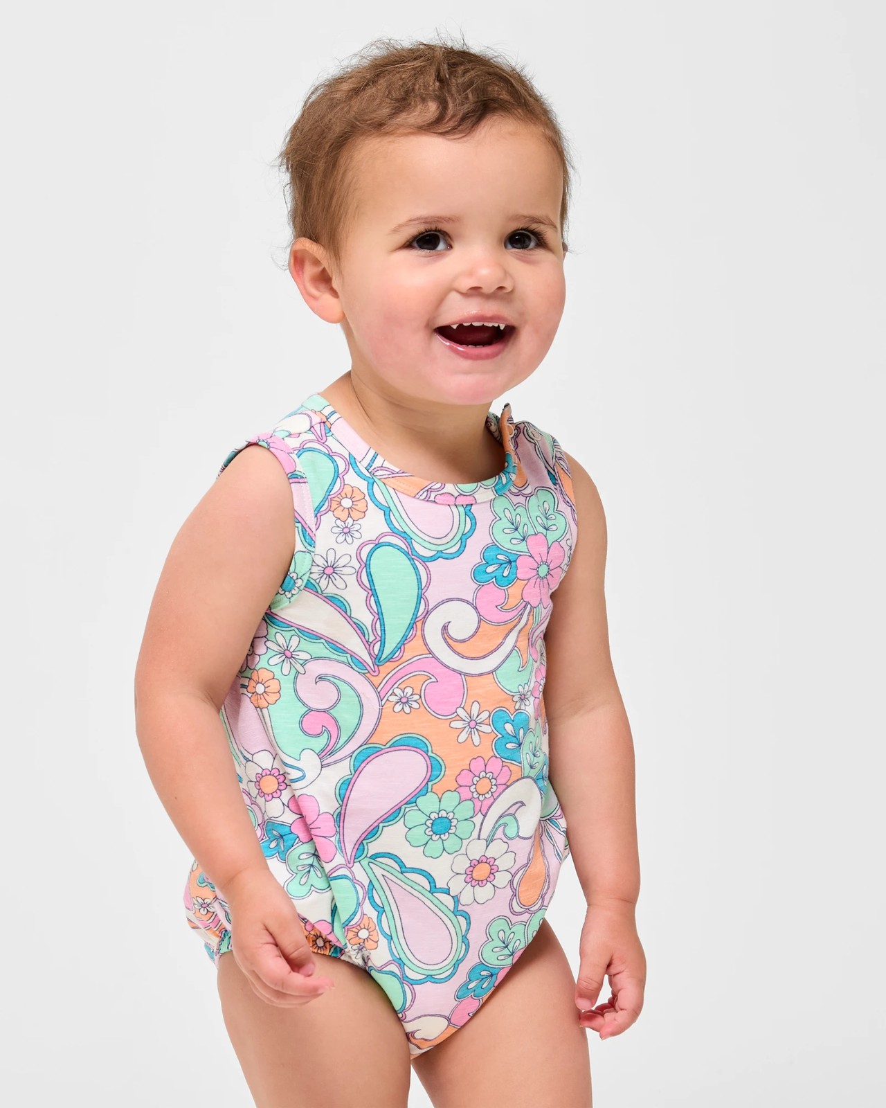 Give your baby the gift of comfort and style with our Baby Organic Cotton Print Bubble Bodysuit. Made from soft organic cotton, this bodysuit is gentle on your baby's delicate skin. The sleeveless design with press studs on the shoulder ensures easy dressing, while the playful all-over print adds a cute touch. Elastic leg openings offer flexibility, making it ideal for both playtime and nap time. Make this adorable bodysuit a staple in your baby's wardrobe.