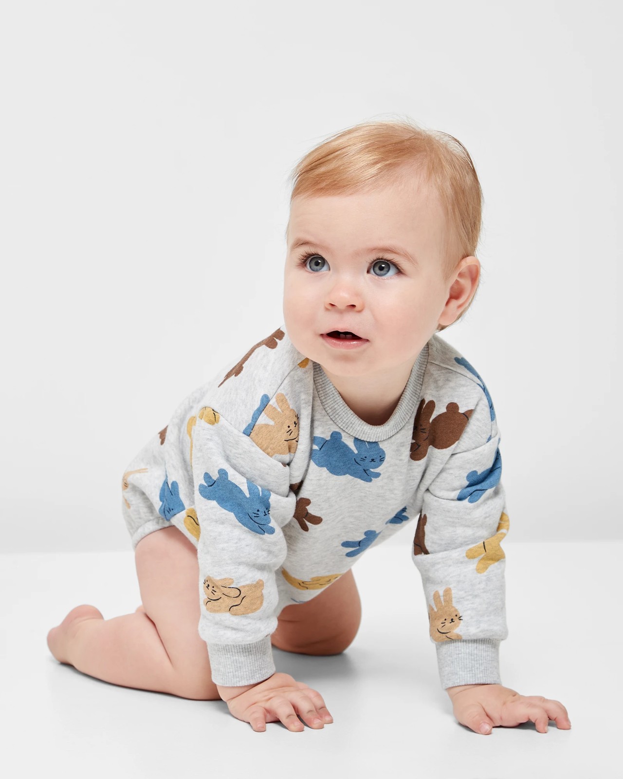 Discover comfort for your little one with our Baby Organic Cotton Print Fleece Bodysuit. Adorned with delightful bunny prints, this bodysuit is a charming addition to your baby's wardrobe. Made from organic cotton with a brushed back, it ensures cosy warmth and a gentle touch for sensitive skin. The round neck and long sleeves offer a snug fit, while convenient press studs at the crotch make changes a breeze. Perfect for daily wear or special outings, this bodysuit promises both style and practicality for your baby. Make it a staple in their collection today!