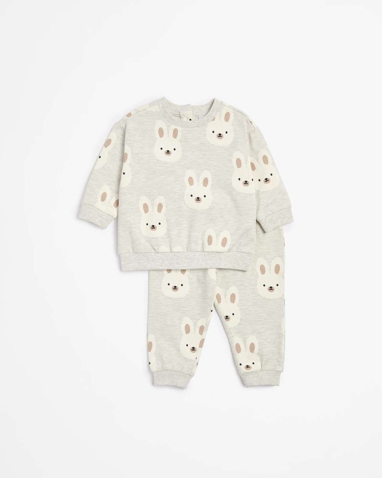 Baby Organic Cotton Print Jumper and Trackpant 2 Piece Set - Bunnies