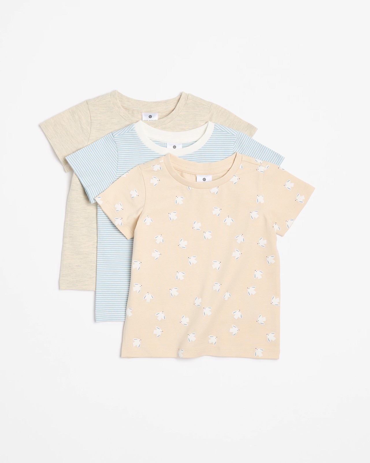 Dress your little one in these delightful baby T-shirts, thoughtfully designed for active days and gentle cuddles alike. The pack includes three regular-fit tops, each featuring a soft ribbed crew neckline and cheerful prints and colours that bring a smile to every outfit. The cotton fabric has a touch of stretch, ensuring comfortable movement throughout playtime or naptime. Short sleeves and a classic straight hem create a timeless look that's easy to pair with anything, especially with the matching leggings set available separately. Perfect for building a versatile wardrobe, these T-shirts make daily dressing simple and enjoyable. Make mornings more fun and ensure your baby is comfy all day – try a pack today and discover new favourites.