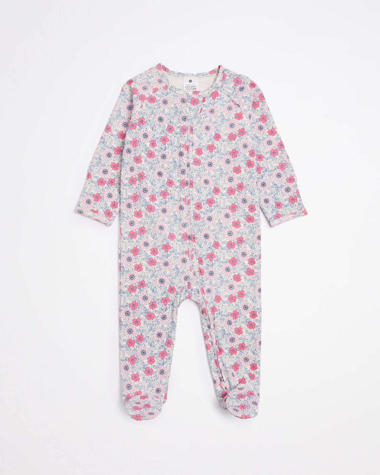 Make your little one look stylish and feel comfy with this Baby Organic Cotton Print Zip Coverall from Targer Baby. Crafted with organic cotton, it features a regular fit along with an all over print for a fun look. It also includes round neck, long raglan sleeves for full range of movement, fold over mitts and two-way zip front for closure convenience. Lastly, the covered feet ensure that your baby's feet are always warm and cozy