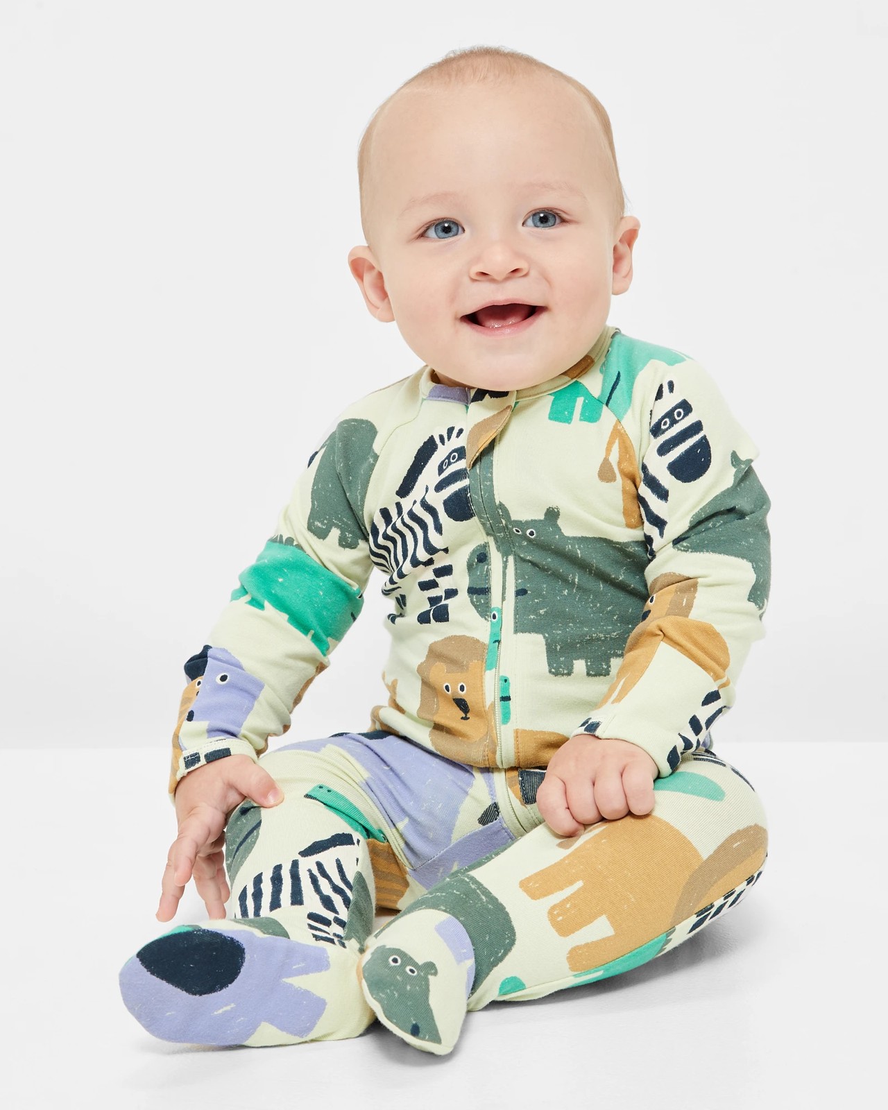 Discover the charm of our delightful Baby Organic Cotton Print Zip Coverall! Crafted with care from organic cotton, you can rest assured that your little one will enjoy the utmost comfort. The regular fit allows for easy movement, while the endearing all-over print adds a touch of style. Featuring a convenient round neck and long raglan sleeves, our coverall ensures full range of movement. The two-way zip front makes dressing fuss-free, and the fold over mittens and covered feet offer practicality. Experience the perfect blend of style and functionality for your baby’s everyday adventures!