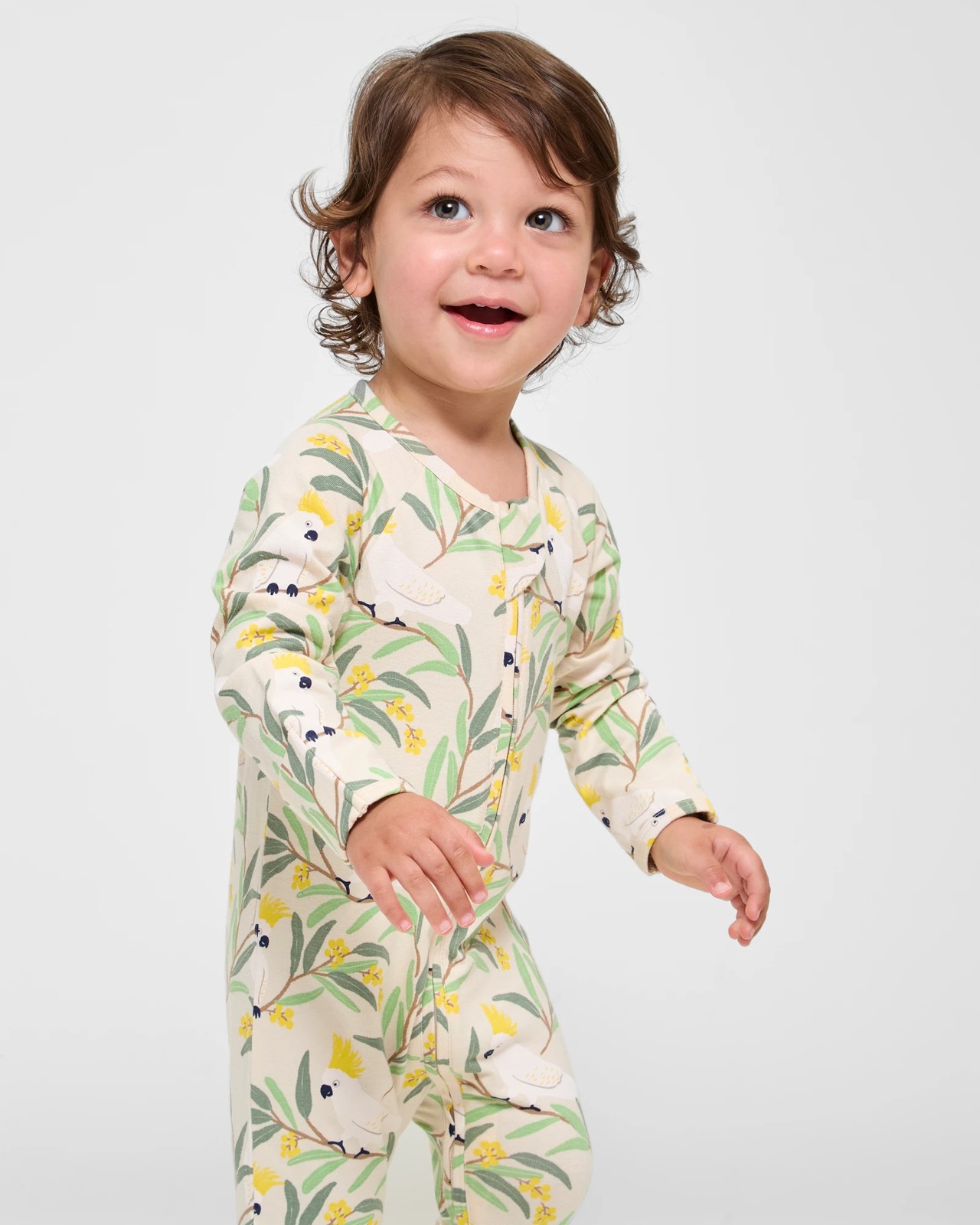 Baby Organic Cotton Print Zip Coverall - Cockatoos