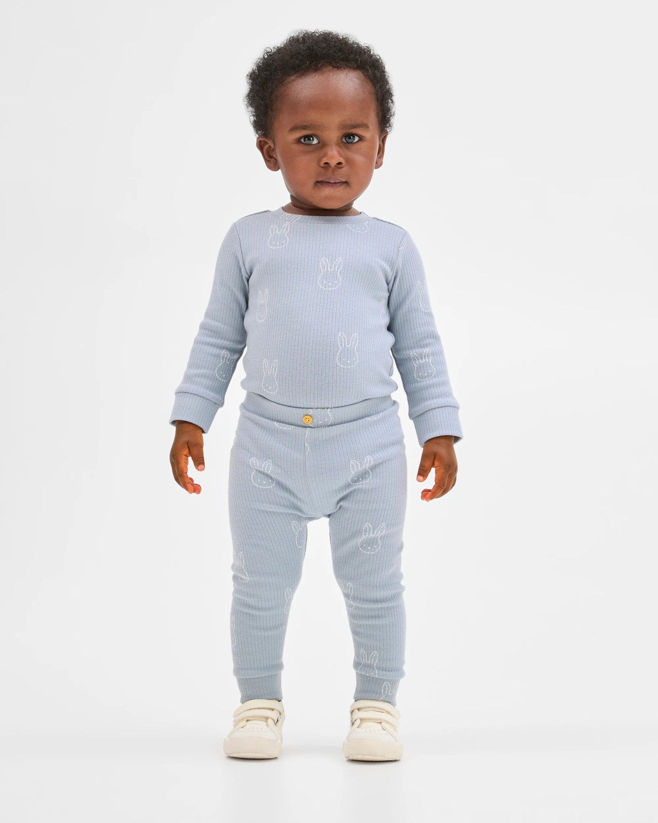 Transform your baby's wardrobe with this irresistibly soft organic cotton rib bodysuit and leggings set. Designed with a ribbed finish, the fabric gently moves with your baby, providing complete comfort while looking stylish. Delight in the playful all-over print, and enjoy fuss-free changes thanks to the handy press snaps at the crotch. The leggings feature an easy elastic waistband, making dressing simpler for parents and more comfortable for little ones. With its regular fit and thoughtful details, this set is perfect for daily wear and special moments alike. Make dressing your baby enjoyable and easy – treat them to this charming set today.